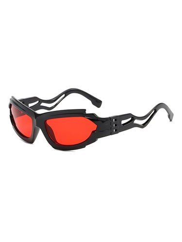 The Techno Totem Glasses in Orange Black fuse dystopian streetwear with ritualistic power. Featuring a rugged matte black frame and bold, blood-orange lenses, these glasses feel like a relic from a cyber tribe — engineered for survival in bass-heavy chaos and neon jungles. The intricate side-frame detailing gives serious warrior-meets-raver energy, while the angular lenses lock in the intensity. These aren’t accessories — they’re face weapons.