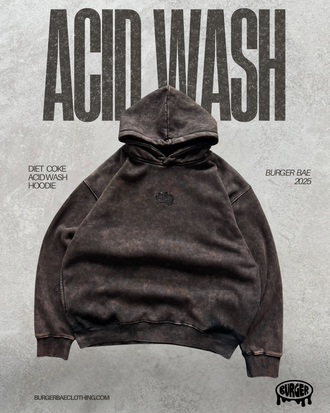 The Diet Coke Acid Wash Hoodie is clean, cold, and lowkey addictive. Washed-out tones, raw acid finish, and an oversized fit that goes with everything. Heavyweight, comfy, and built for all-day wear without trying too hard.