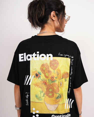 Introducing our Van Gogh inspired Sunflower drop sleeved tee, the perfect addition to any art lover's wardrobe. This beautiful tee features a stunning rendition of Vincent Van Gogh's iconic painting "Sunflower" printed on the back. Whether you're an art lover, a fashionista, or someone who simply appreciates the beauty of nature and the power of inspiring words, this tee is the perfect addition to your wardrobe. It's great for casual wear, but also versatile enough to dress up for a night out.