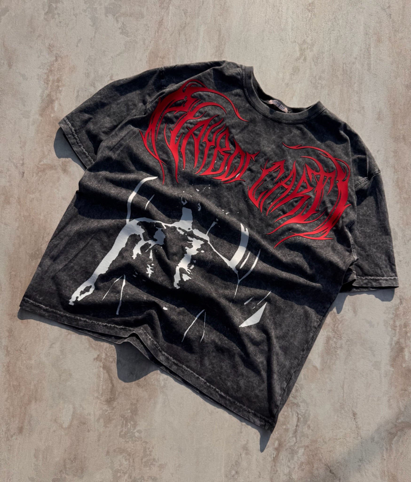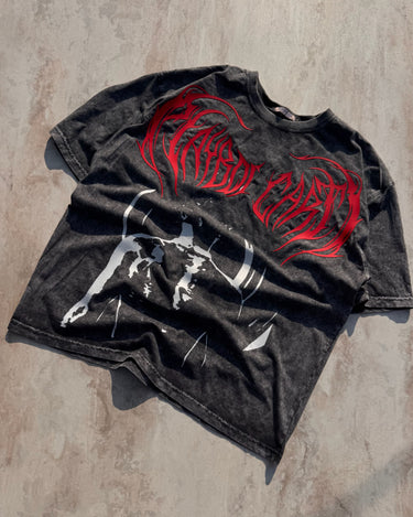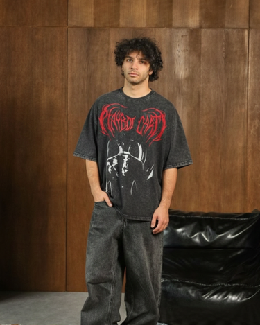 Inferno Script Tee by Burger Bae is straight fire, no filter. Dark acid-wash base, blood-red flame lettering, and opium-core energy that hits different. Heavy-feel fabric, relaxed fit, and a graphic that looks like it was written in flames. Built for night outs, loud fits, and main-character moments. Not for the safe ones. Only for the fearless. 🔥
