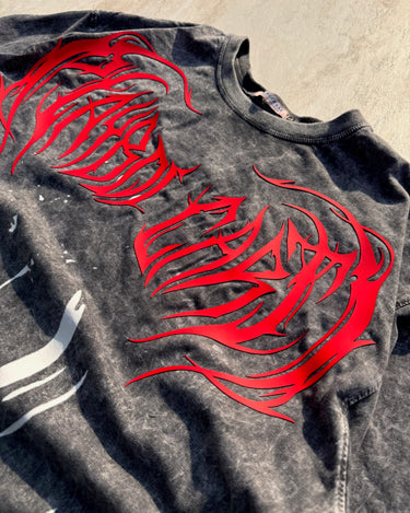 Inferno Script Acid Wash Drop Sleeved Tee for Men & Women