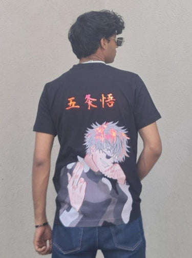 Step into the world of Jujutsu Kaisen with our Satoru Gojo Drop-Sleeved Tee. Featuring a mesmerizing print of the enigmatic character, this tee combines style and comfort flawlessly. Crafted with premium materials, it offers a flattering fit and lets you display your admiration for the series in a fashionable and captivating manner. Elevate your anime wardrobe now!