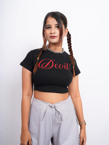 Devil : Burger Bae Round Neck Crop Baby Tee For Women