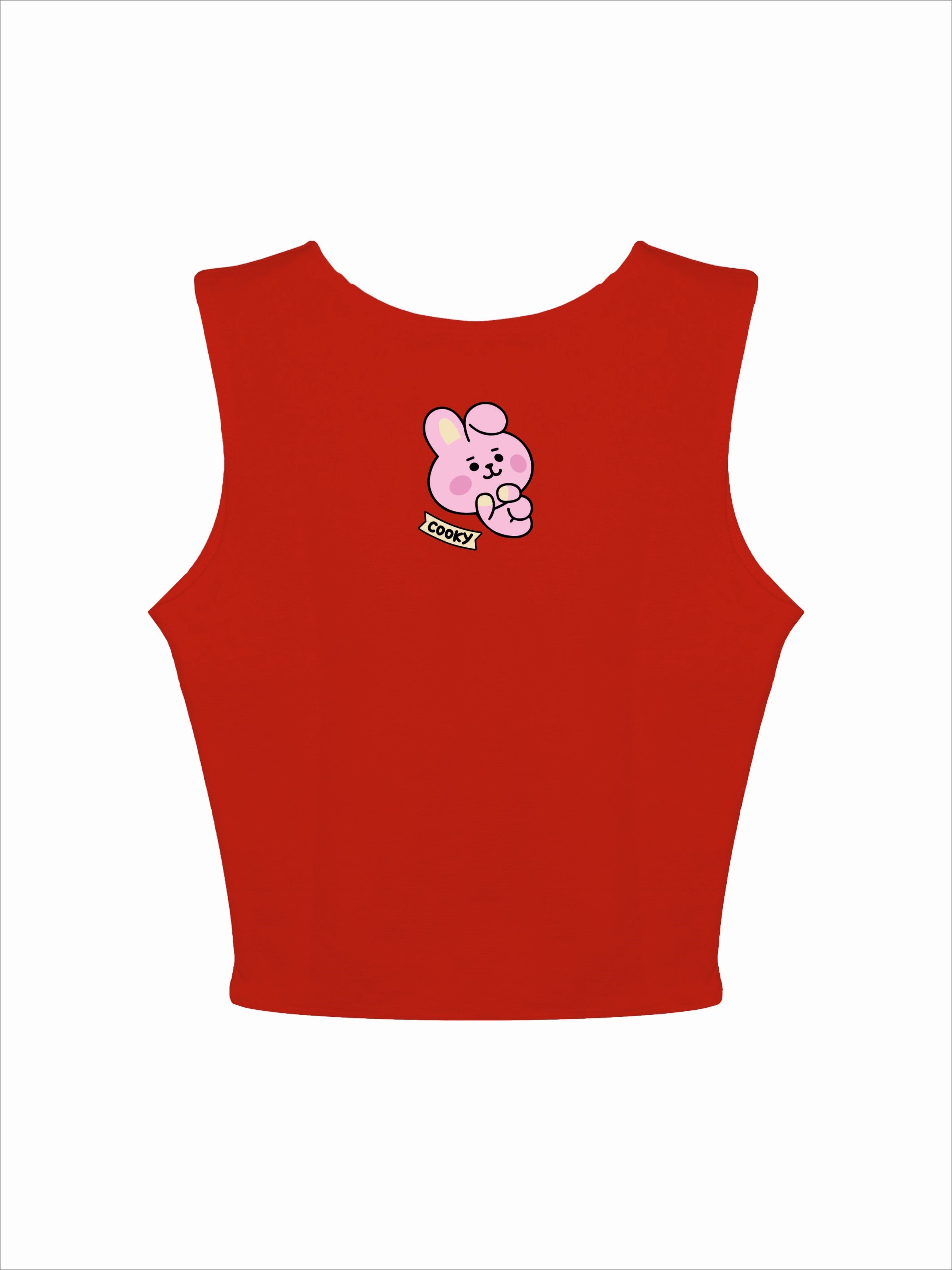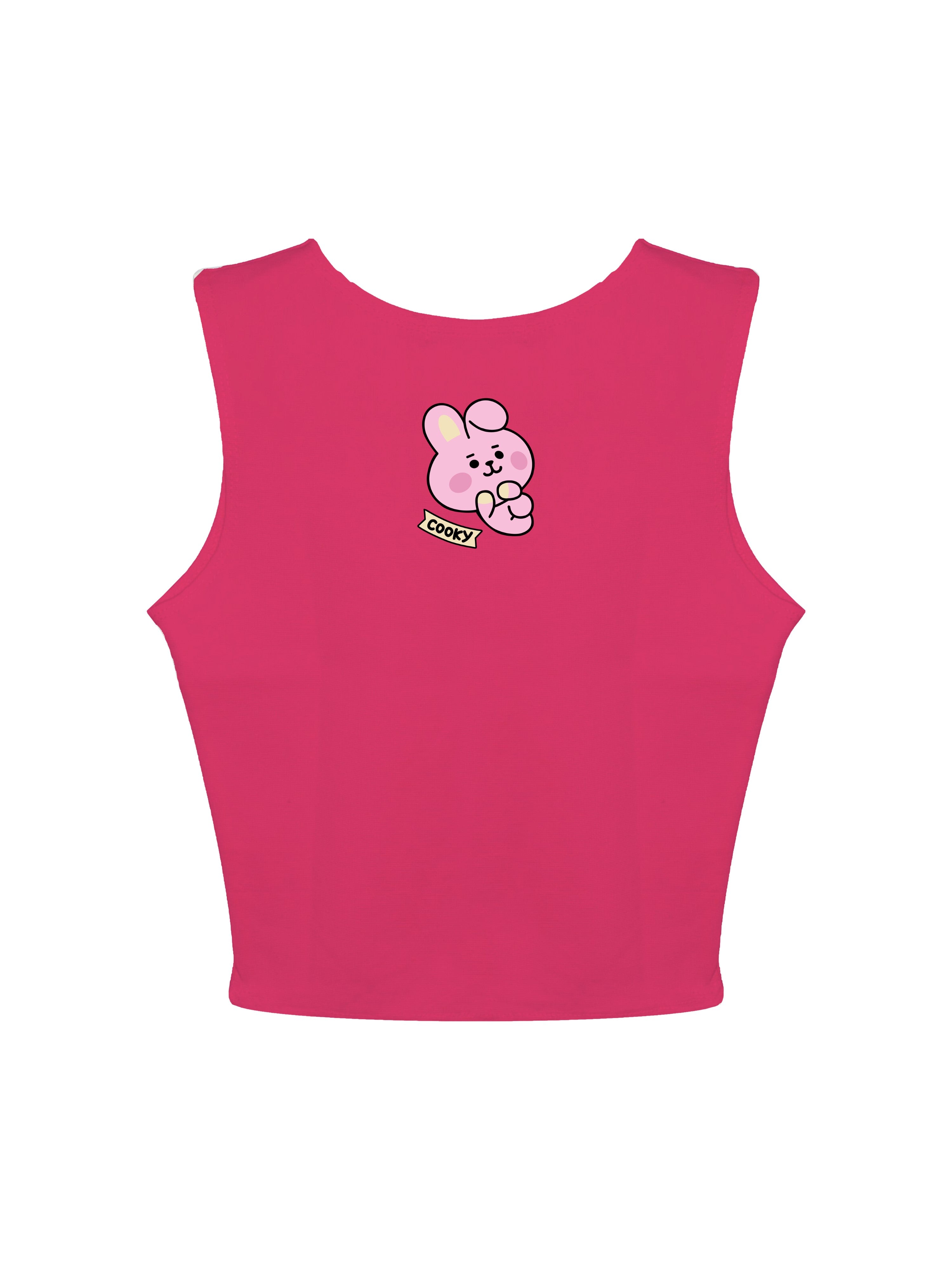 Add a playful edge to your wardrobe with the Cooky BT21 Rachel Tank. This sleeveless, cropped tank features a cute and vibrant Cooky graphic from the BT21 collection, bringing a fun and trendy vibe. The bold hot colour makes it a standout piece, perfect for making a stylish statement.