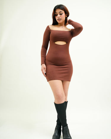 Turn heads with the Anna Dress, a perfect blend of elegance and allure. Designed for the modern woman, this body-hugging mini dress features a flattering off-shoulder neckline and long sleeves that add a touch of sophistication. The cutout detail at the waist enhances your silhouette, making it the ideal pick for nights out, date nights, or stylish daytime looks. Crafted from a soft, stretchable fabric, it ensures a comfortable yet figure-enhancing fit.