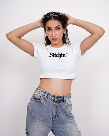 Bitchin : Burger Bae Round Neck Crop Baby Tee For Women
