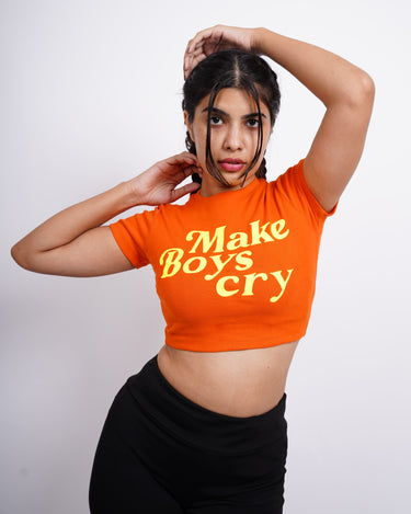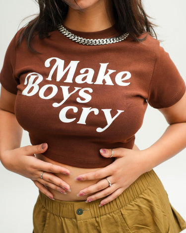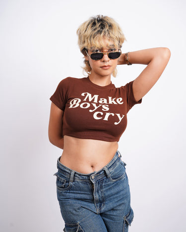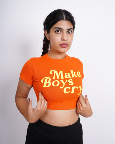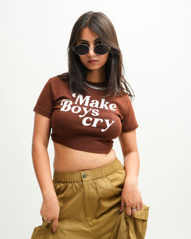 Make boys Cry : Burger Bae Round Neck Crop Baby Tee For Women
