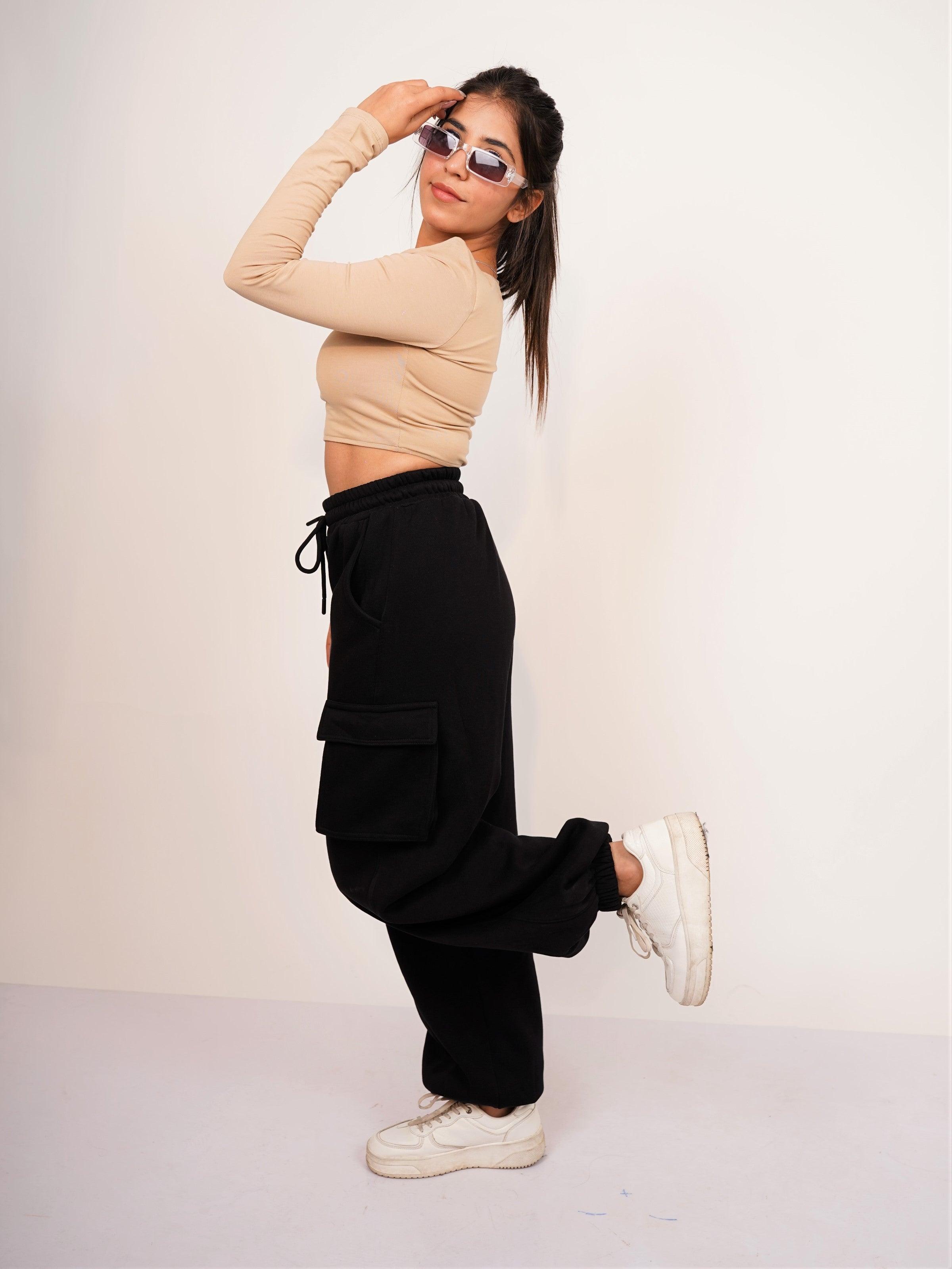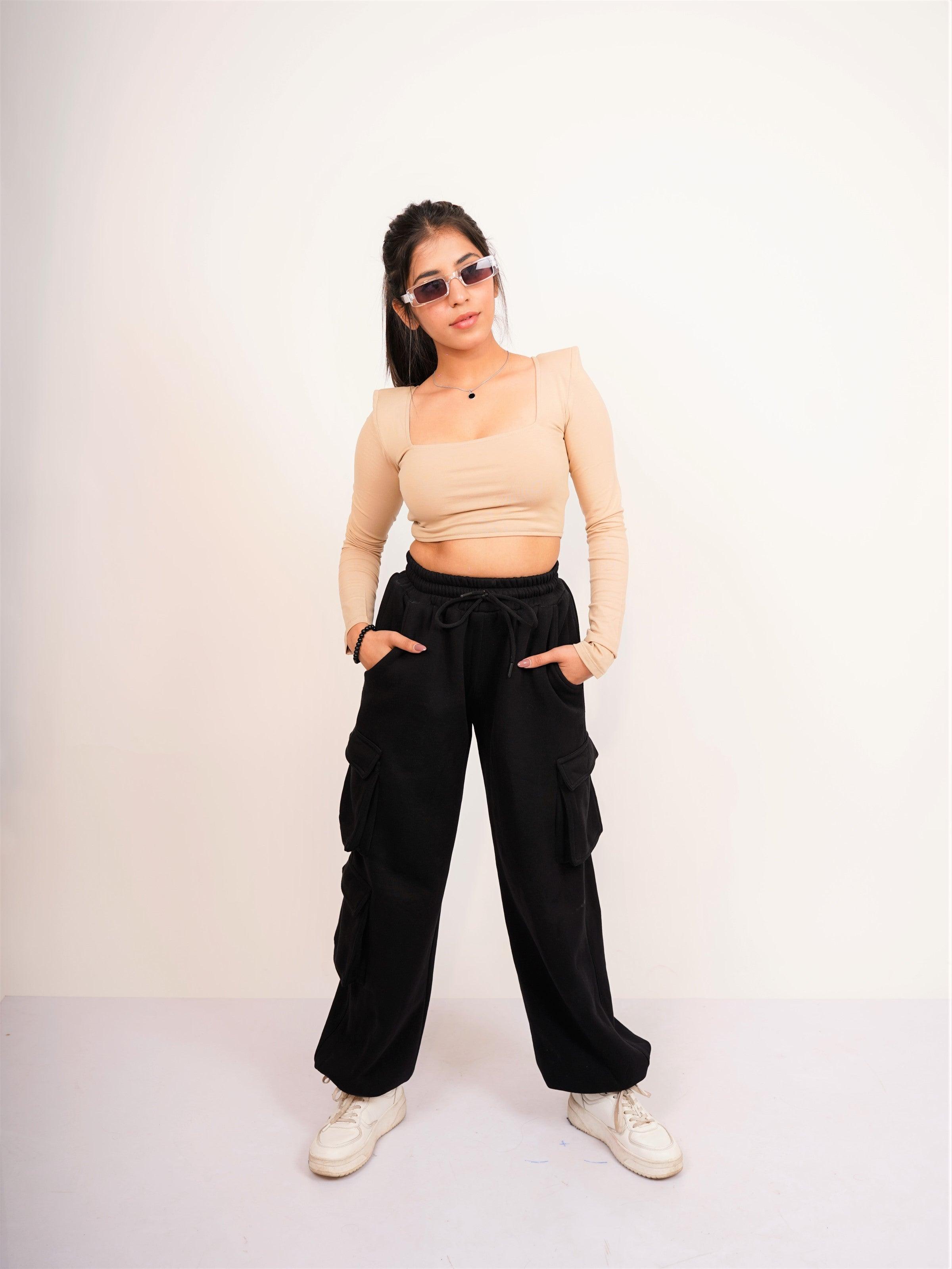 Zendaya Top (Beige) (Shoulder Pad Full Sleeves Summer Cotton Lycra Top by Burger Bae)