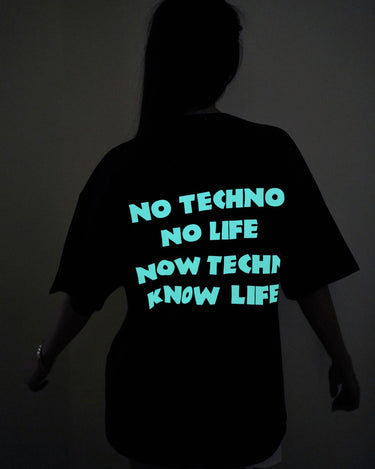 Know Techno Know Life : Glow In Dark Drop sleeved Tee (Green Glow) For Men and Women