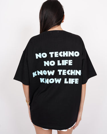 Make a statement with this bold and trendy oversized T-shirt. Designed for both men and women, this tee features a striking back print that reads "No Techno No Life, Know Techno Know Life", making it the perfect pick for electronic music lovers and street wear enthusiasts.