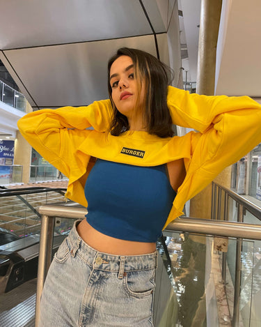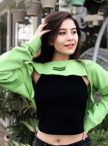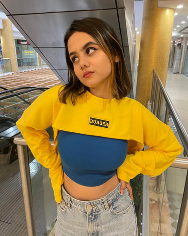 Women Super Bust Crop Solid Sweat (Burger Bust)