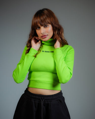 Elevate your wardrobe with this chic turtleneck crop top, designed for both comfort and style. Made from a soft, ribbed fabric, it hugs your body for a flattering fit while offering a cozy feel. The high-neck detail adds a touch of sophistication, making it perfect for layering or wearing solo.