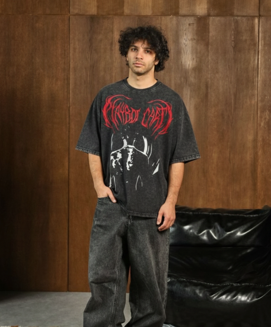 Inferno Script Tee by Burger Bae is straight fire, no filter. Dark acid-wash base, blood-red flame lettering, and opium-core energy that hits different. Heavy-feel fabric, relaxed fit, and a graphic that looks like it was written in flames. Built for night outs, loud fits, and main-character moments. Not for the safe ones. Only for the fearless. 🔥