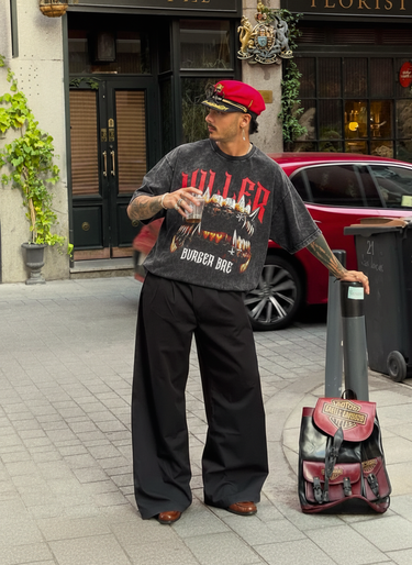 Midnight Killer Tee by Burger Bae is made for after-dark legends. Dark acid-wash vibes, blood-red attitude, and zero chill energy. Soft, heavy-feel fabric with a relaxed fit that hits different every time you step out. Whether it’s late-night drives, rooftop scenes, or main-character moments- this tee owns the spotlight. Silent. Deadly. Dripping in confidence.🔥