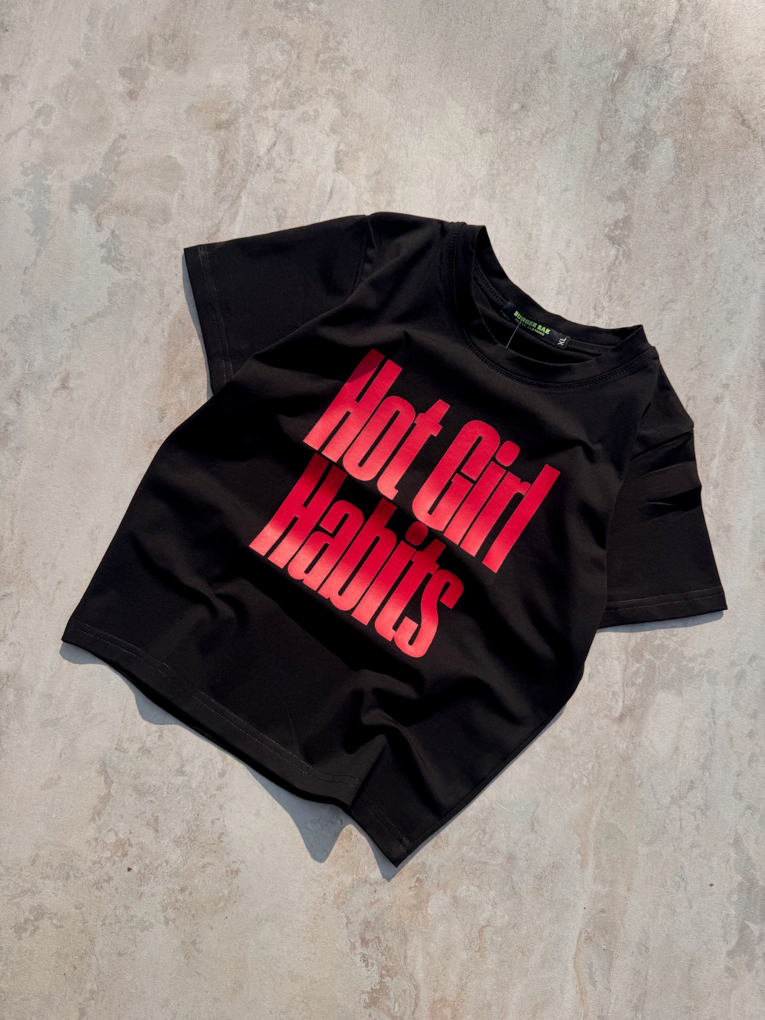 The âHot Girl Habitsâ It Girl Baby Tee is for the girls who glow different, think different, and move like the main character. Cute, confident, and effortlessly bold- this tee is your daily reminder to stay disciplined, stylish, and unstoppable.