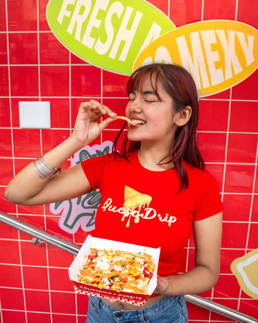 Cheesy, playful, and impossible to resist — the Oops Queso baby tee is your ultimate snack-inspired streetwear pick. 🧀 Inspired by California Burrito’s cheesy queso, this cropped tee brings the same indulgent, flavour-packed vibe to your wardrobe.