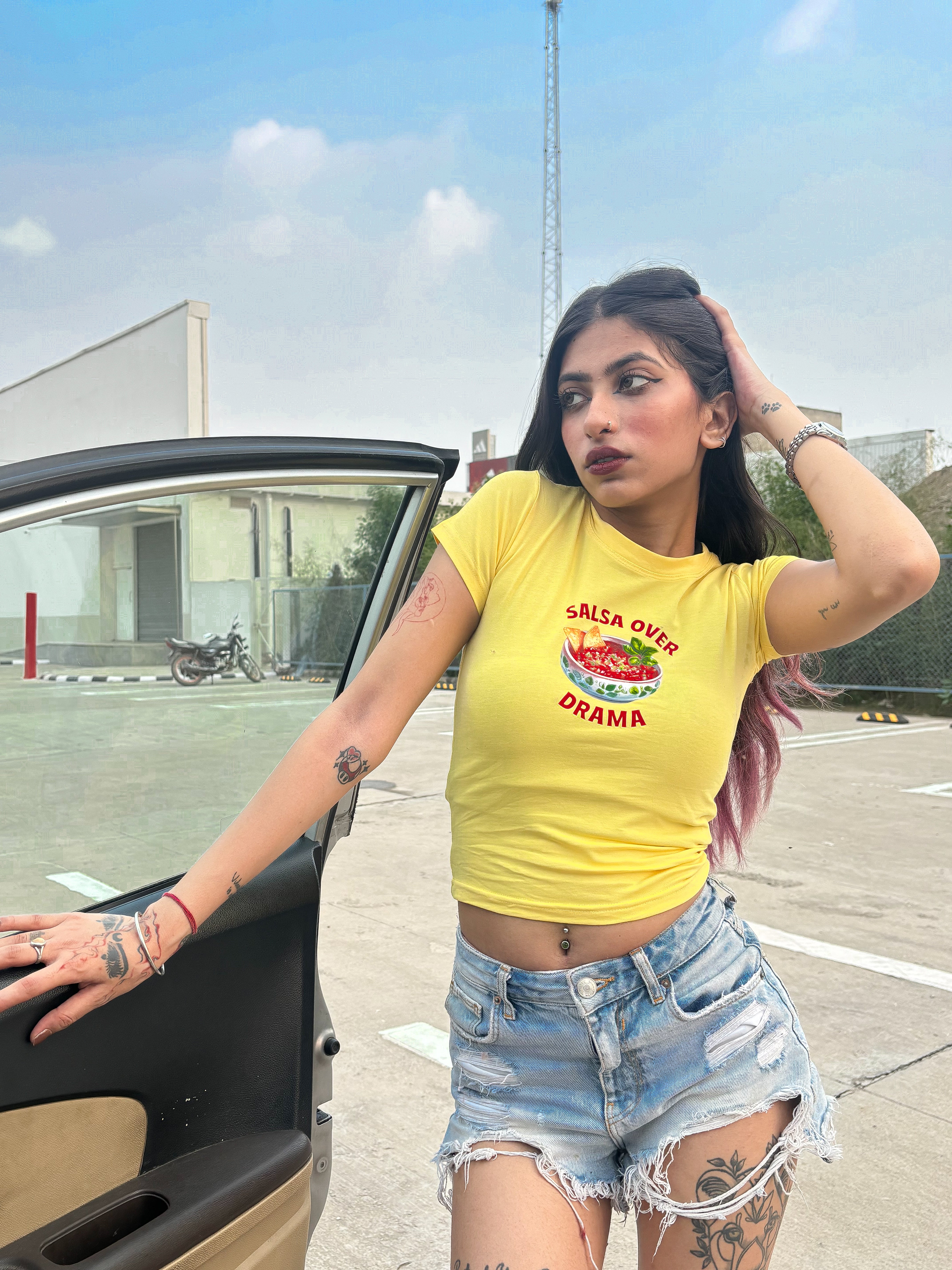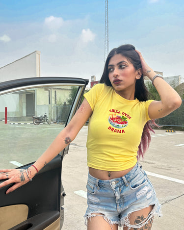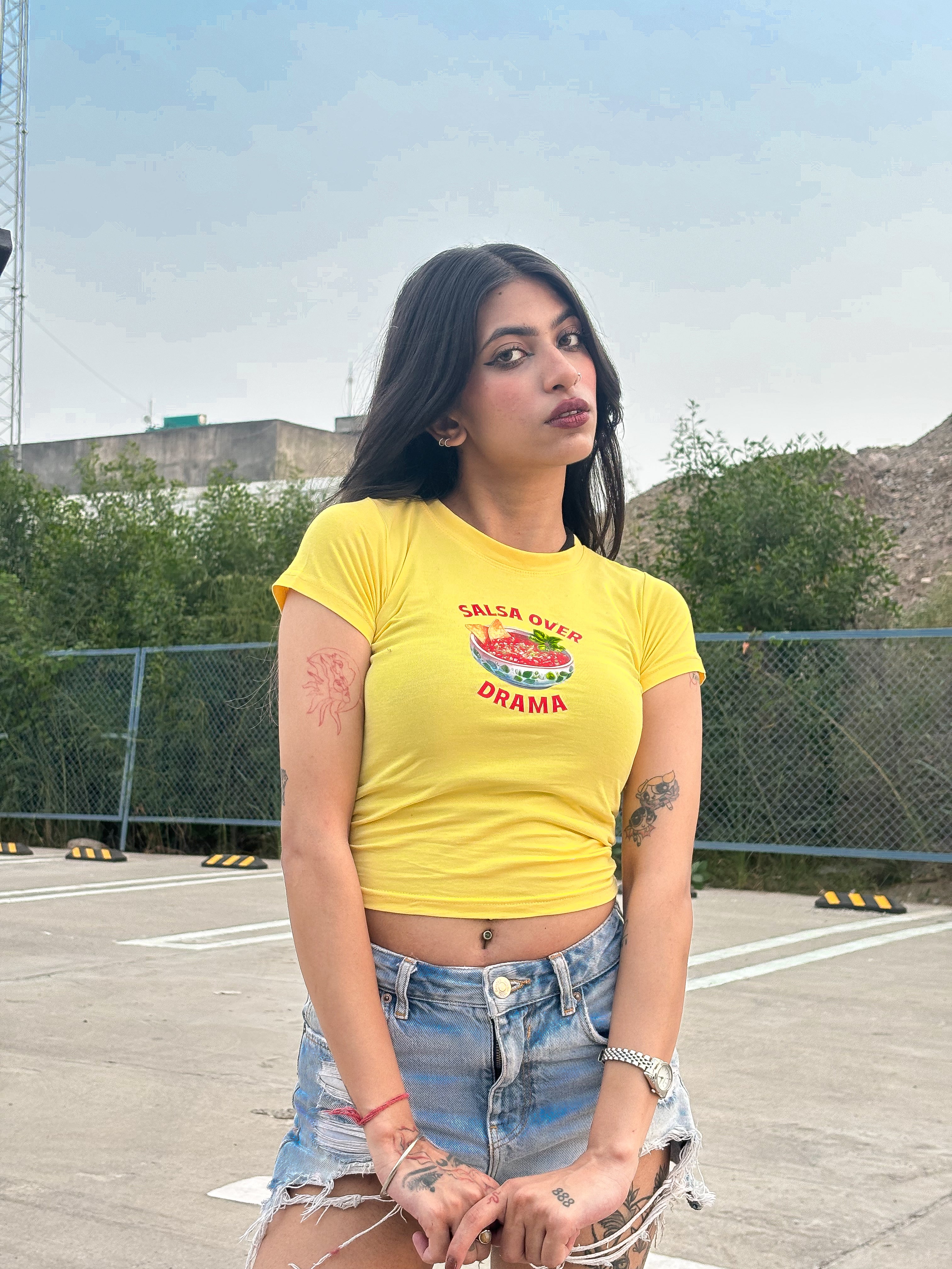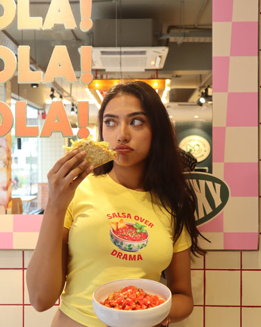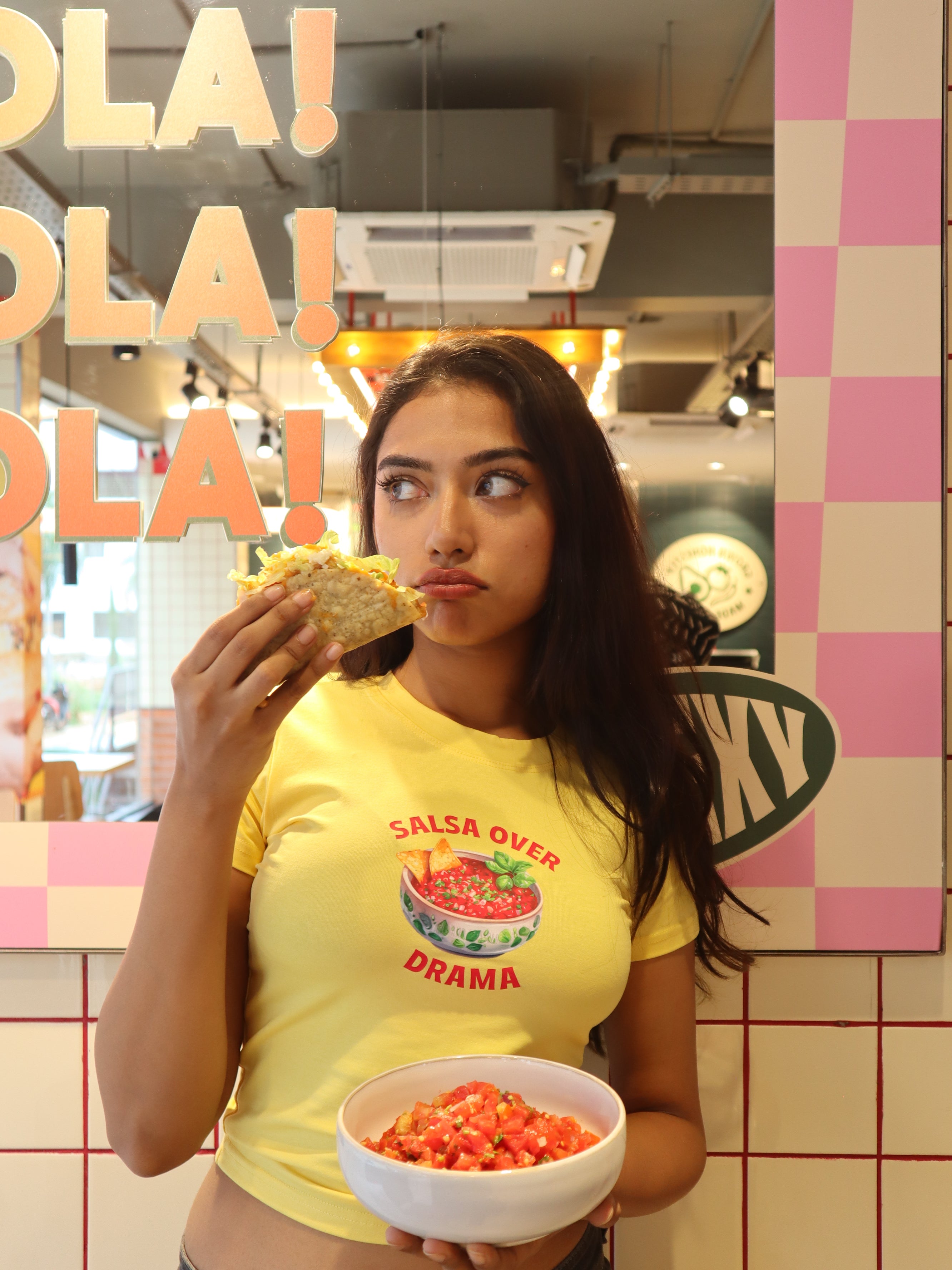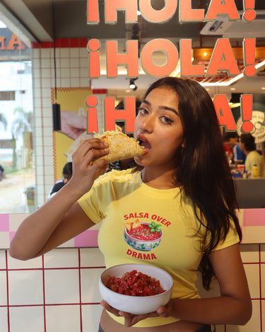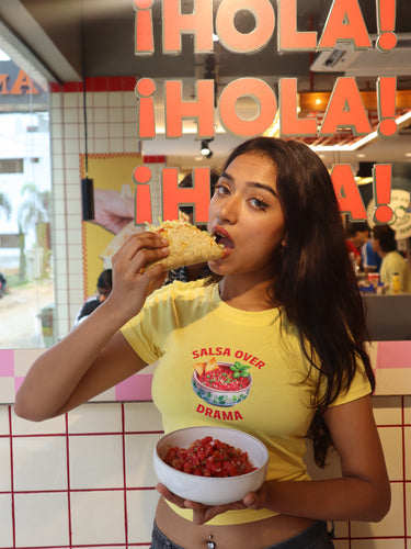 Because who’s got time for drama when there’s flavour to chase? 💅 The Salsa Over Drama baby tee is your perfect clapback fit — bold, cheeky, and dripping with real attitude. Inspired by the zest and punch of homegrown tomatillo salsa from California Burrito, this cropped fit is designed for the girl who loves good food, chooses food over drama!