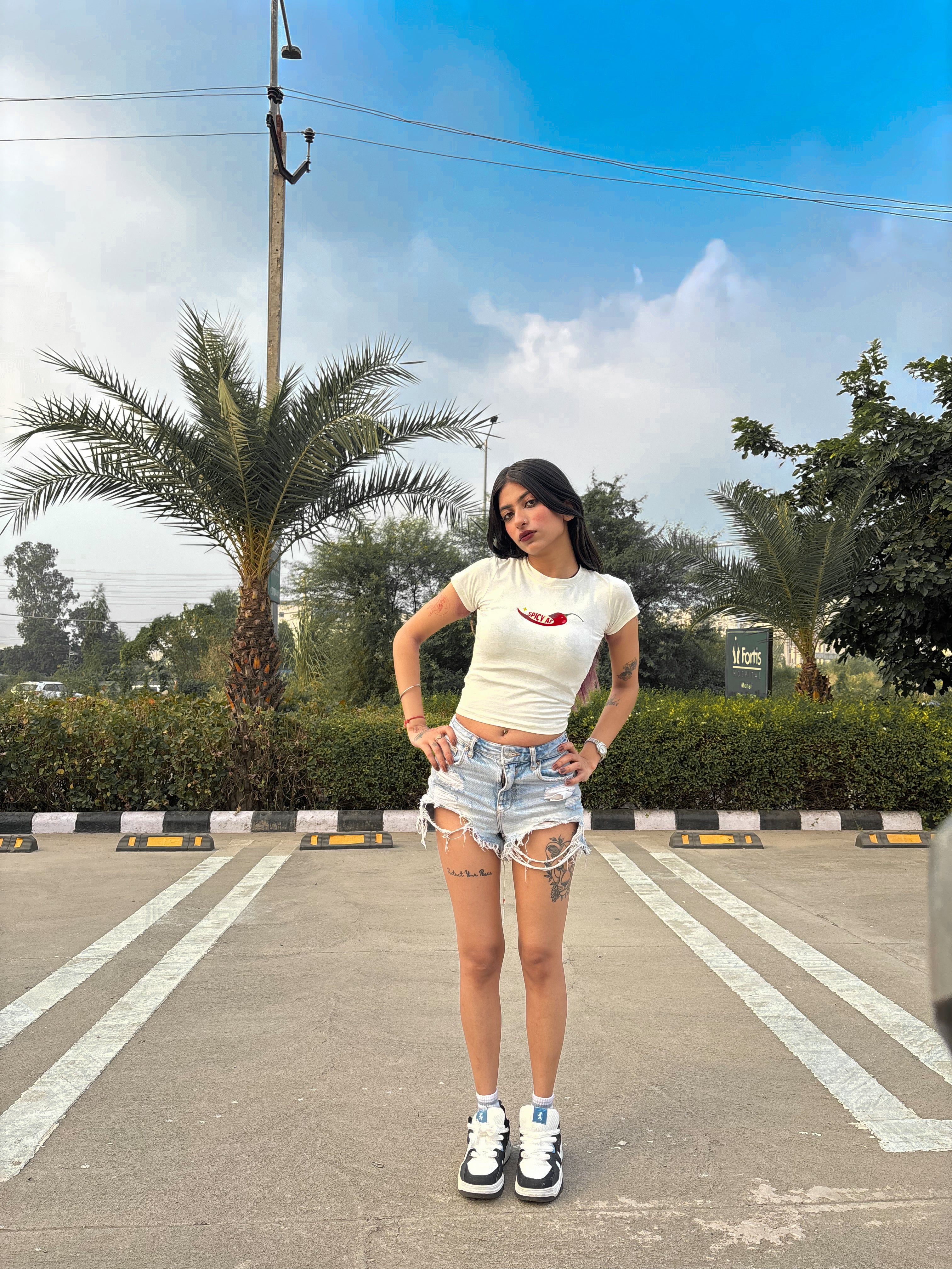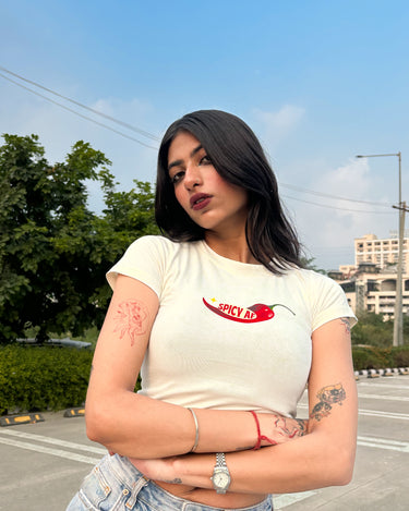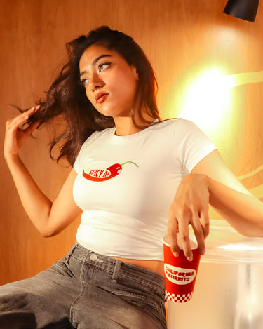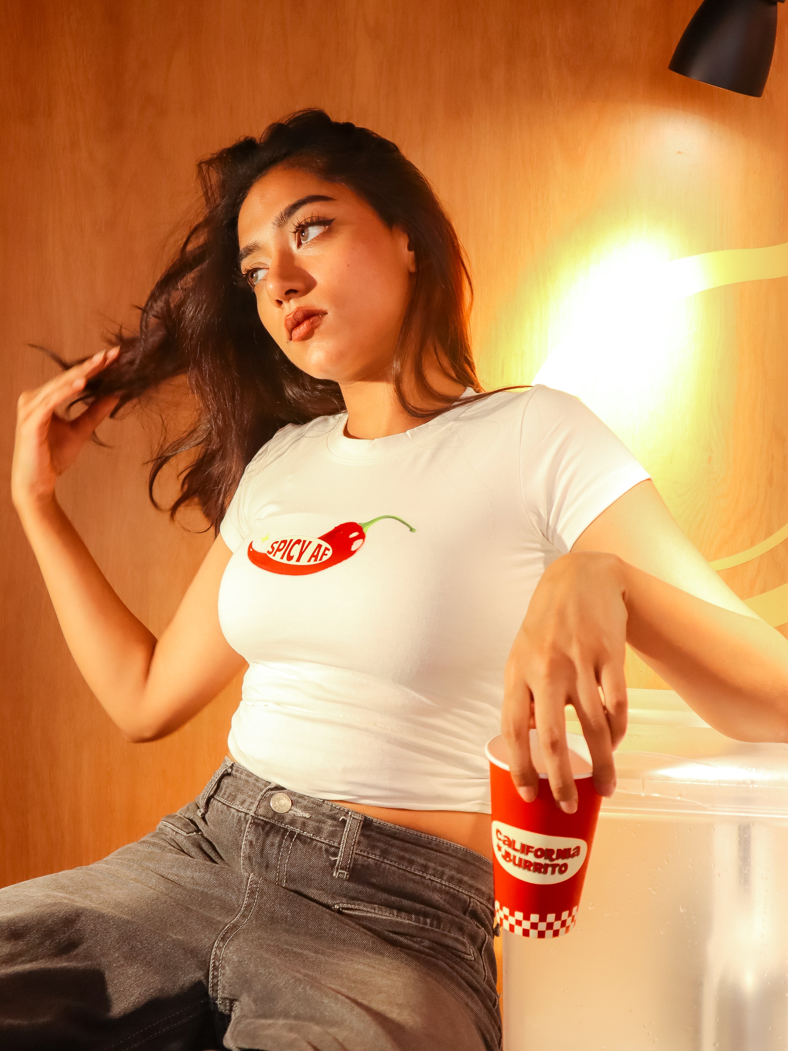 For the ones who don’t just enter the room — they set it on fire. 🔥 The Spicy AF It Girl baby tee is all about confidence turned up to max heat. Inspired by California Burrito’s spicy hot habanero chilli, this cropped fit is made for who owns her vibe and turns everyday looks into a statement.