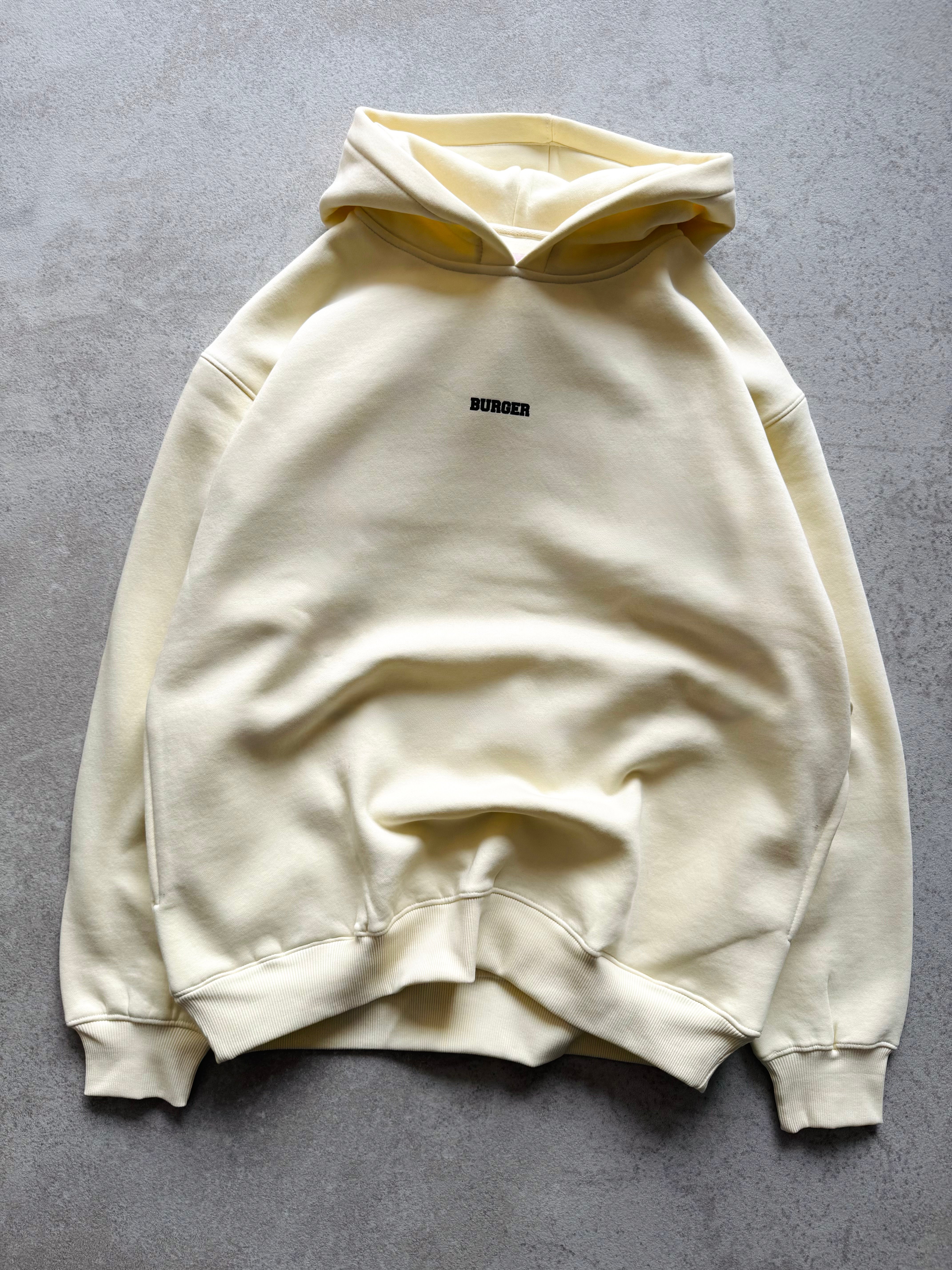 The Burger Bae Off White Hoodie (without draw) is that smooth, creamy drip that looks soft but hits loud. Oversized, heavyweight, and stupidly comfortable, it carries that “I didn’t try but I still look better than you” energy. The off-white tone gives effortless luxury, while the logo adds that quiet flex- subtle, but still in your face. Wear it anywhere: coffee runs, college, late-night drives- it just fits every moment. Soft vibe. Loud presence.