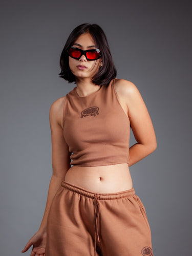 Mocha Mousse Juicy Logo Sleeveless Racer Tank For Women