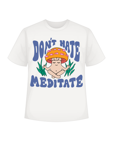 Find your inner peace with the Don't Hate, Meditate Regular Tee, a perfect blend of chill vibes and street-style edge. Featuring a bold yet playful design, this tee is for those who believe in good energy, mindfulness, and, of course, great food!