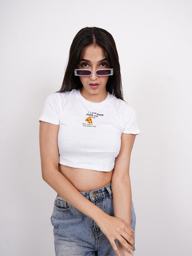 I Love Pizza : Burger Bae Round Neck Crop Baby Tee For Women