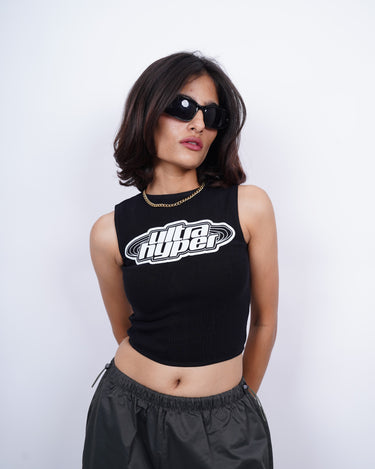 The Ultra Hyper: Burger Bae Sleeveless Rachel Tank for Women is designed for those who embrace high-energy fashion with a bold attitude. Crafted from a premium ribbed fabric, this cropped tank offers a figure-hugging fit with a soft and breathable feel. These classic shades are elevated by the eye-catching "Ultra Hyper" graphic in contrasting white, giving it an edgy, street-style appeal. Featuring a high round neckline and a sleeveless cut, it pairs effortlessly with cargo pants, joggers, or denim for a sleek, urban-inspired look. Perfect for casual outings, concerts, or making you turn heads and own the streets with confidence.