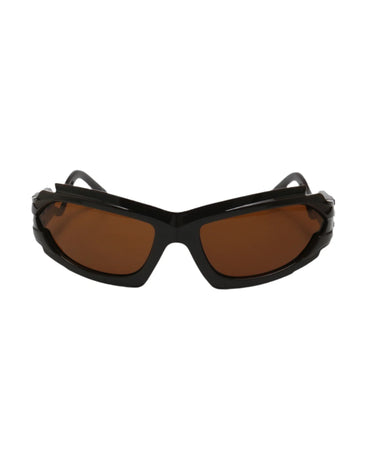 The Techno Totem Glasses in Brown Black fuse dystopian streetwear with ritualistic power. Featuring a rugged matte black frame and bold, blood-orange lenses, these glasses feel like a relic from a cyber tribe — engineered for survival in bass-heavy chaos and neon jungles. The intricate side-frame detailing gives serious warrior-meets-raver energy, while the angular lenses lock in the intensity. These aren’t accessories — they’re face weapons.