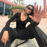 Unleash your inner superheroine with our captivating Bat Women Bodysuit! This sleek and stylish ensemble is a must-have for crime-fighting fashionistas. With its form-fitting design and the iconic bat symbol, you'll turn heads faster than the Batmobile. Soar through the night in this witty and empowering bodysuit, because being a hero is always in vogue. Get ready to kick some villainous butt and slay the fashion game!