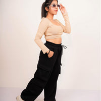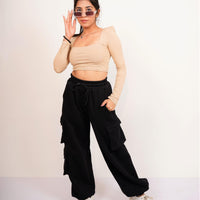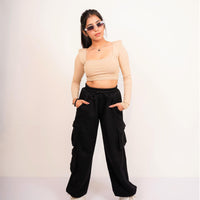 Zendaya Top (Beige) (Shoulder Pad Full Sleeves Summer Cotton Lycra Top by Burger Bae)