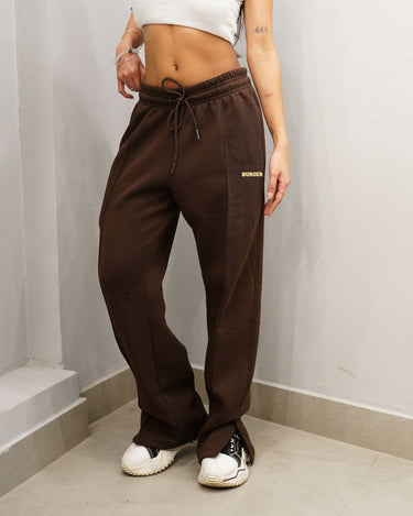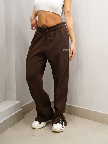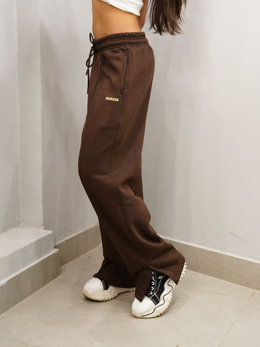 The Berlin Lounge Side Slit Sweatpants for Men and Women are the ultimate combination of comfort and street-style chic. Made from a soft, premium cotton blend, these sweatpants offer a relaxed fit, perfect for casual wear, lounging, or athleisure looks. Featuring a rich brown color, these unisex sweatpants are designed with side slits at the ankles, adding a trendy flair and allowing for easy movement. The elastic waistband with an adjustable drawstring ensures a secure and customizable fit. The subtle "BURGER" logo in gold detailing on the side adds a sleek, minimalist touch.
