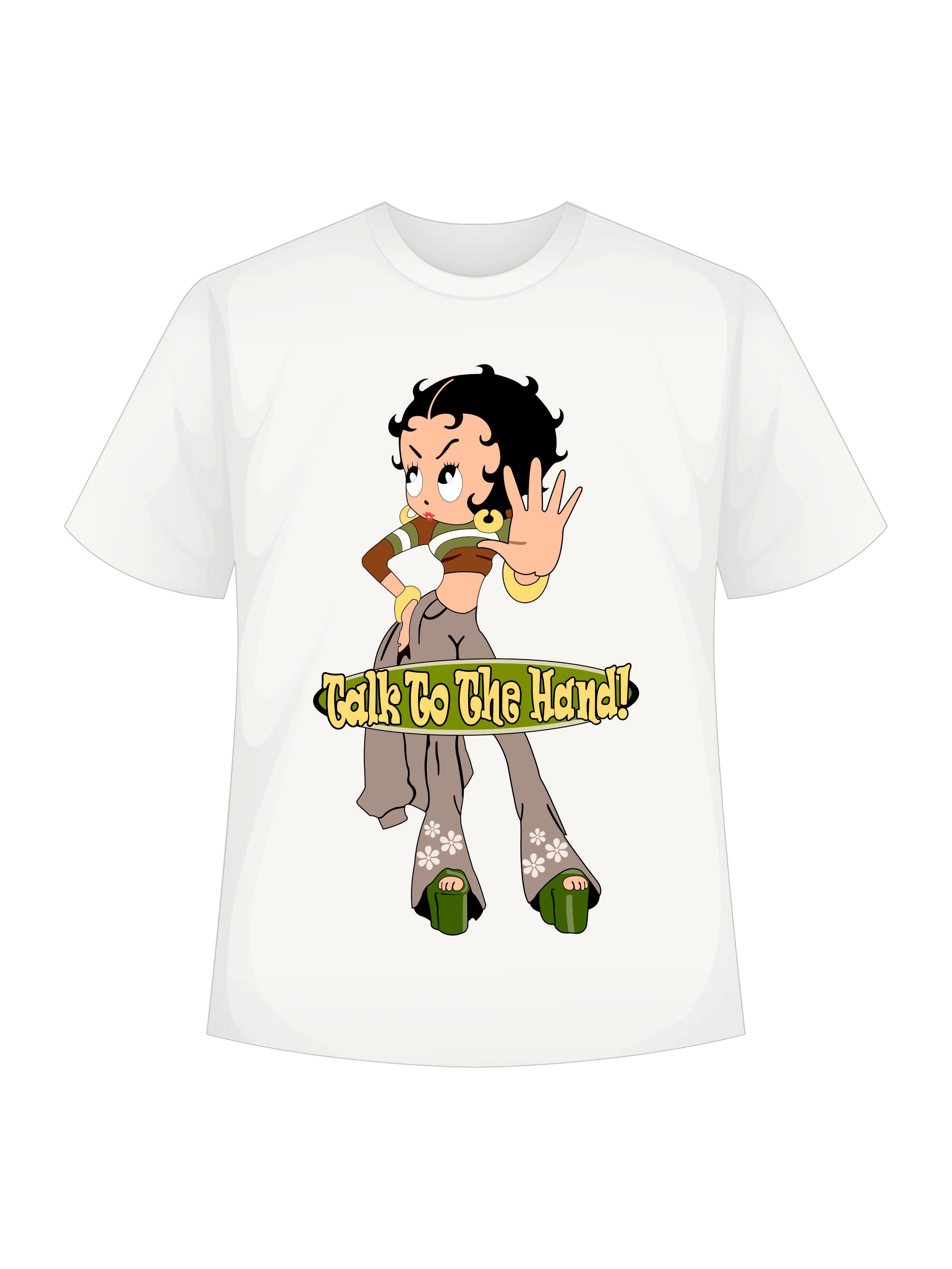 Make a bold statement with the Betty Boop "Talk to the Hand" Burger Bae RegularTee! This trendy unisex tee features a fun and sassy Betty Boop graphic, dressed in a retro-chic outfit, giving off major attitude with the iconic "Talk to the Hand" phrase.