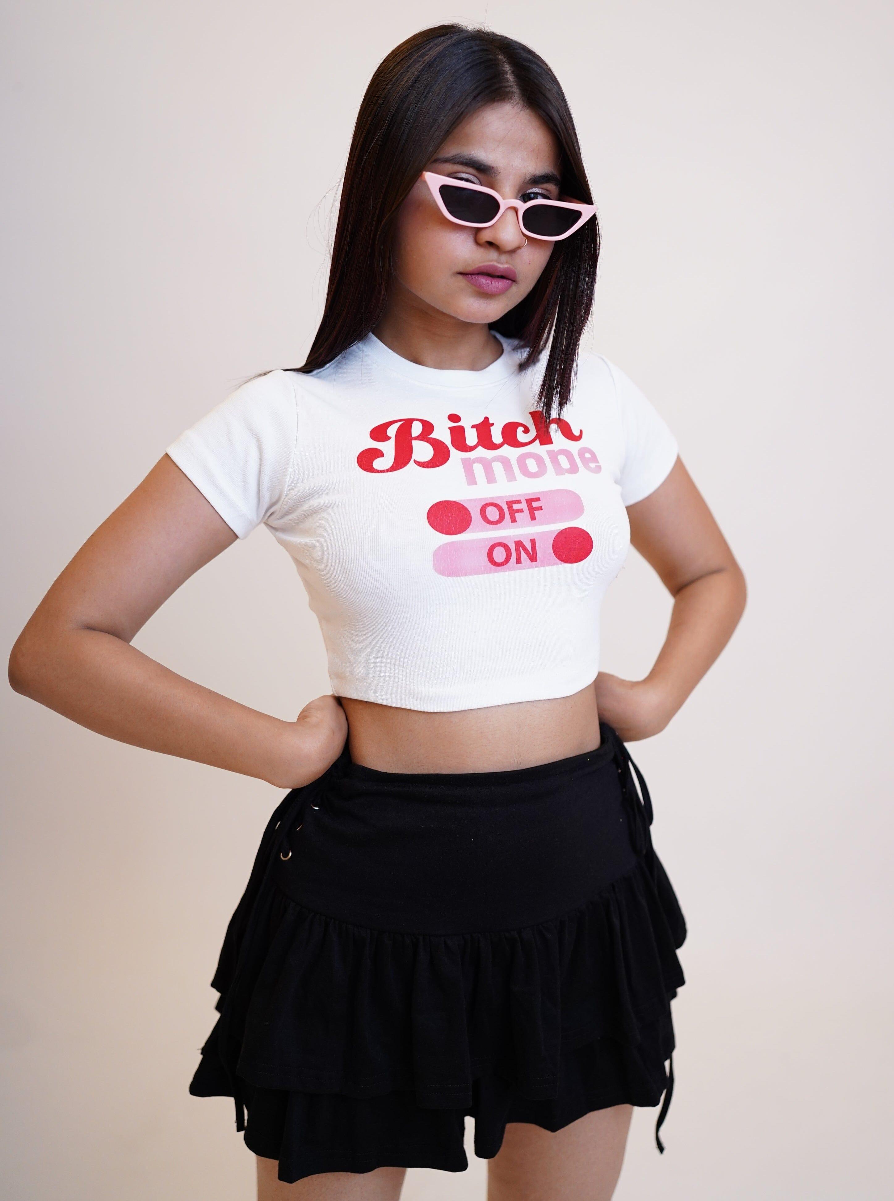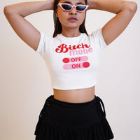 Bitch mode : Burger Bae Round Neck Crop Baby Tee For Women