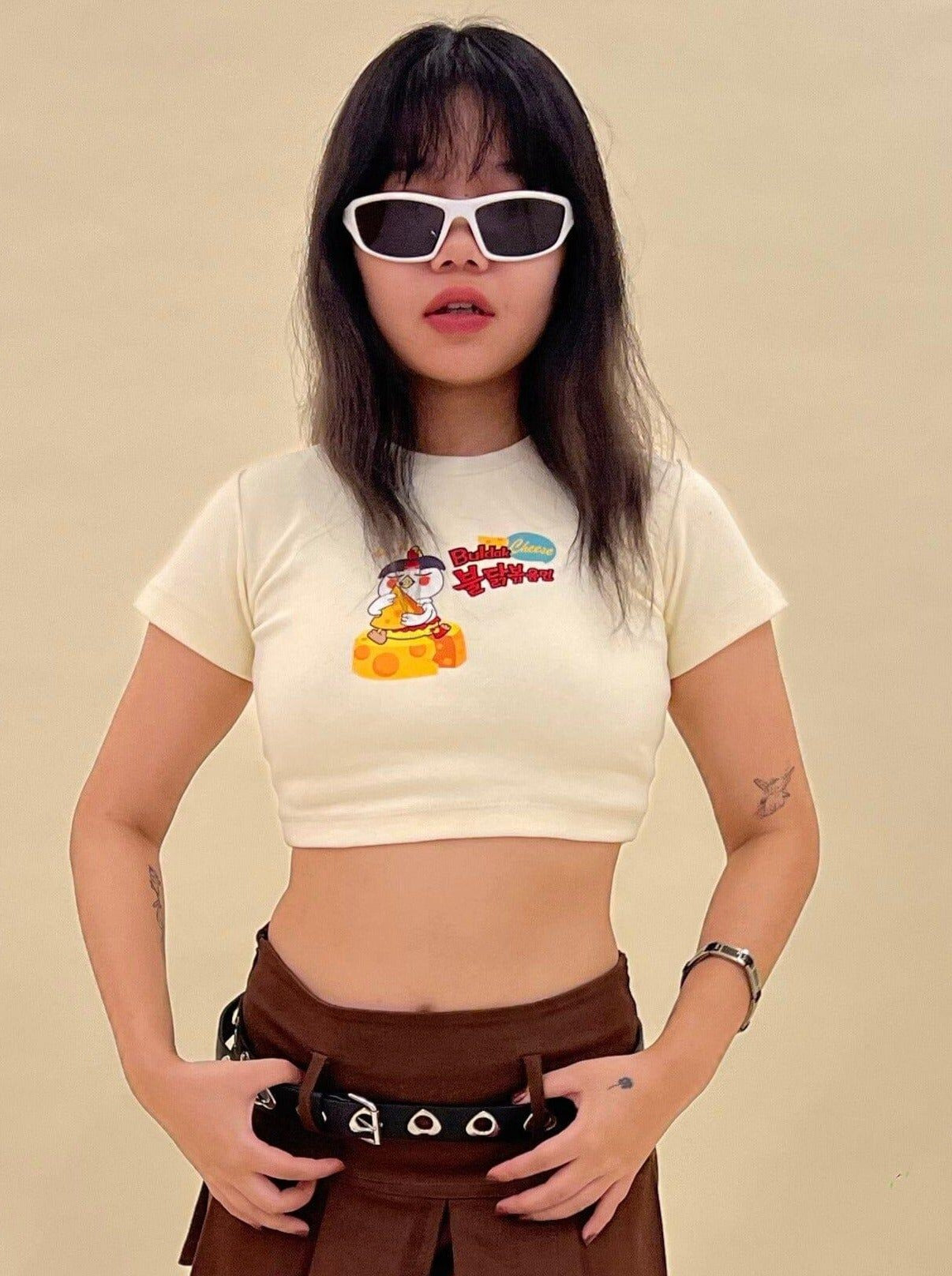 Buldak Ramen Cheese : Burger Bae Round Neck Crop Baby Tee For Women