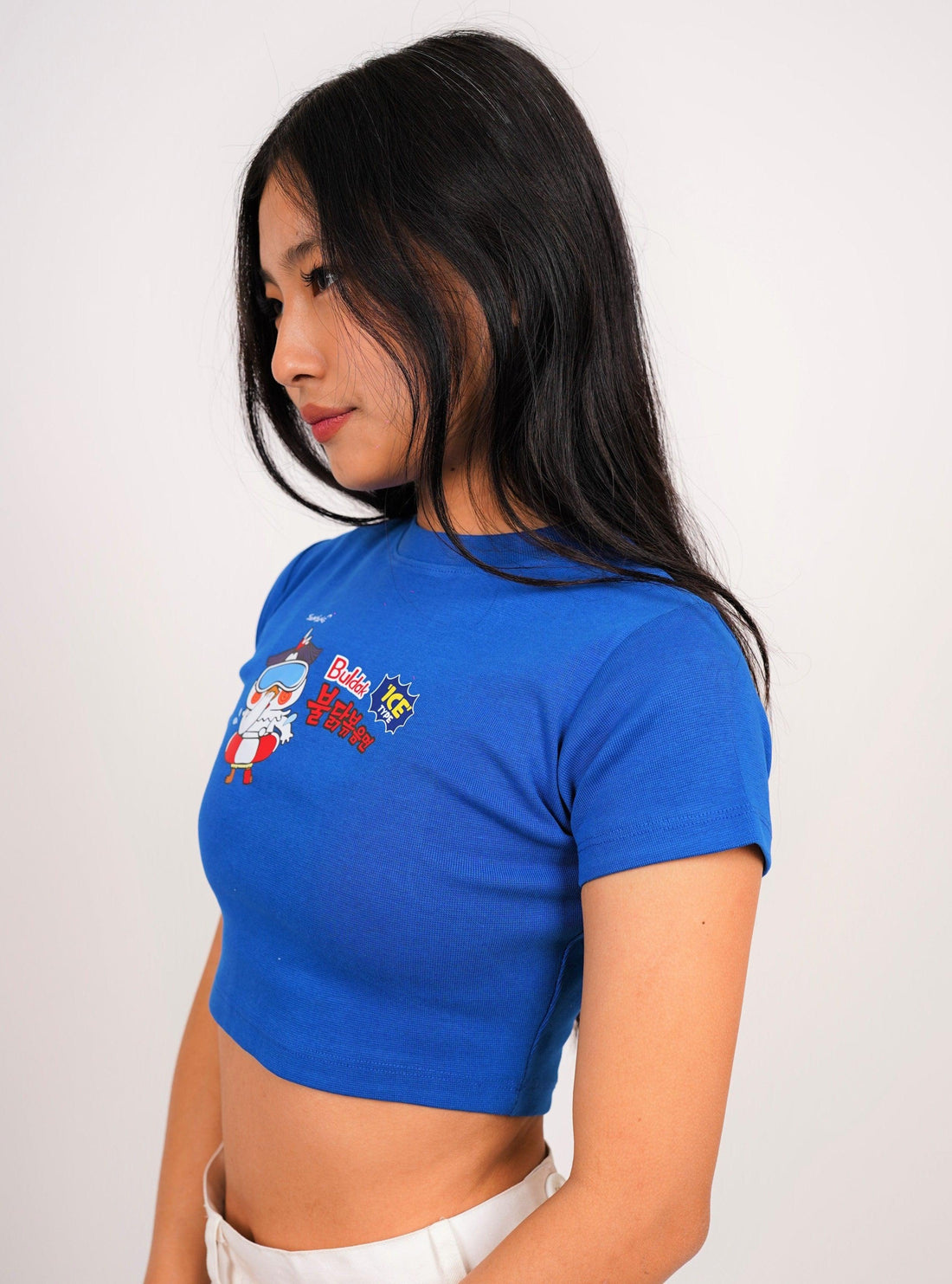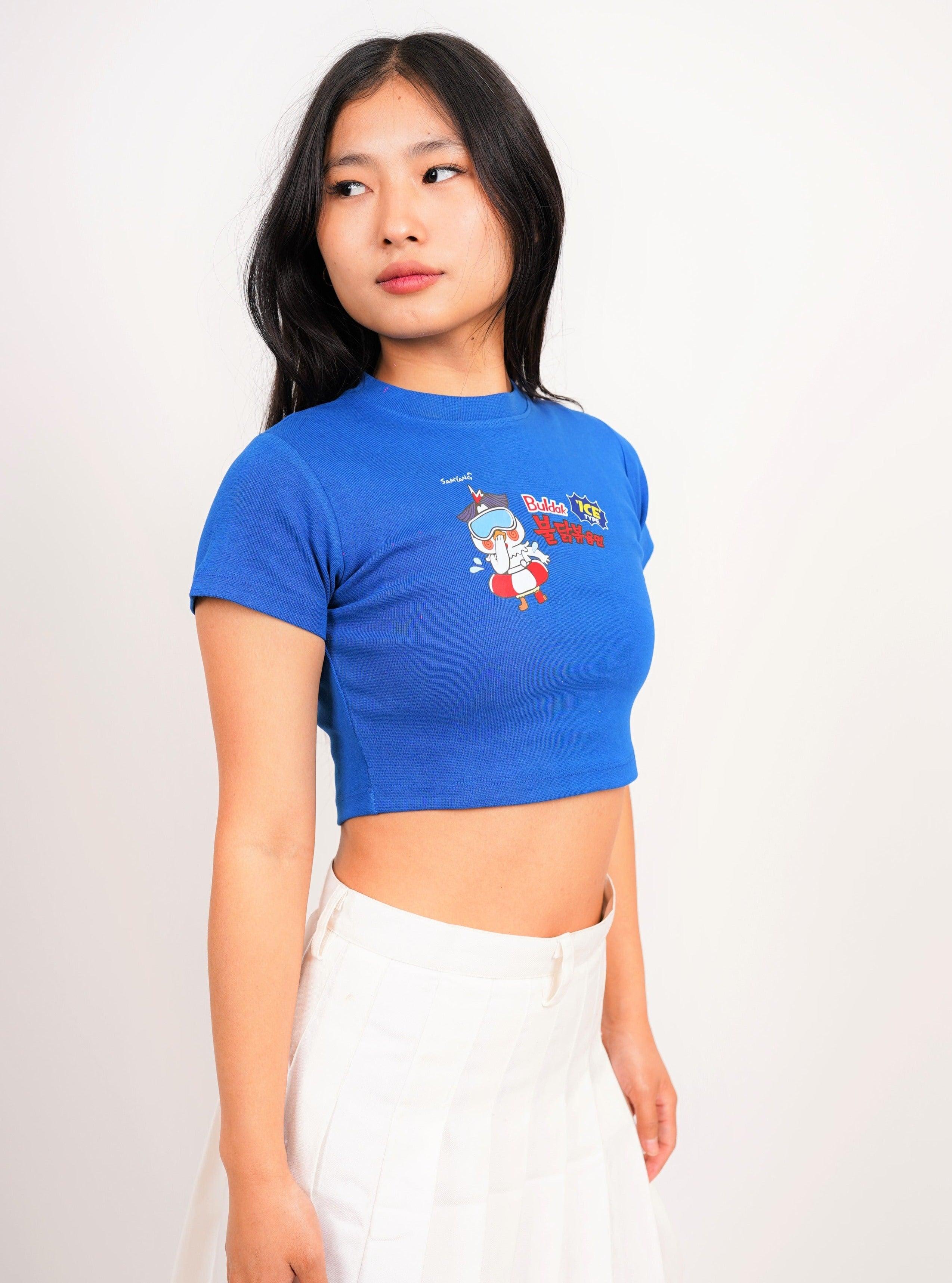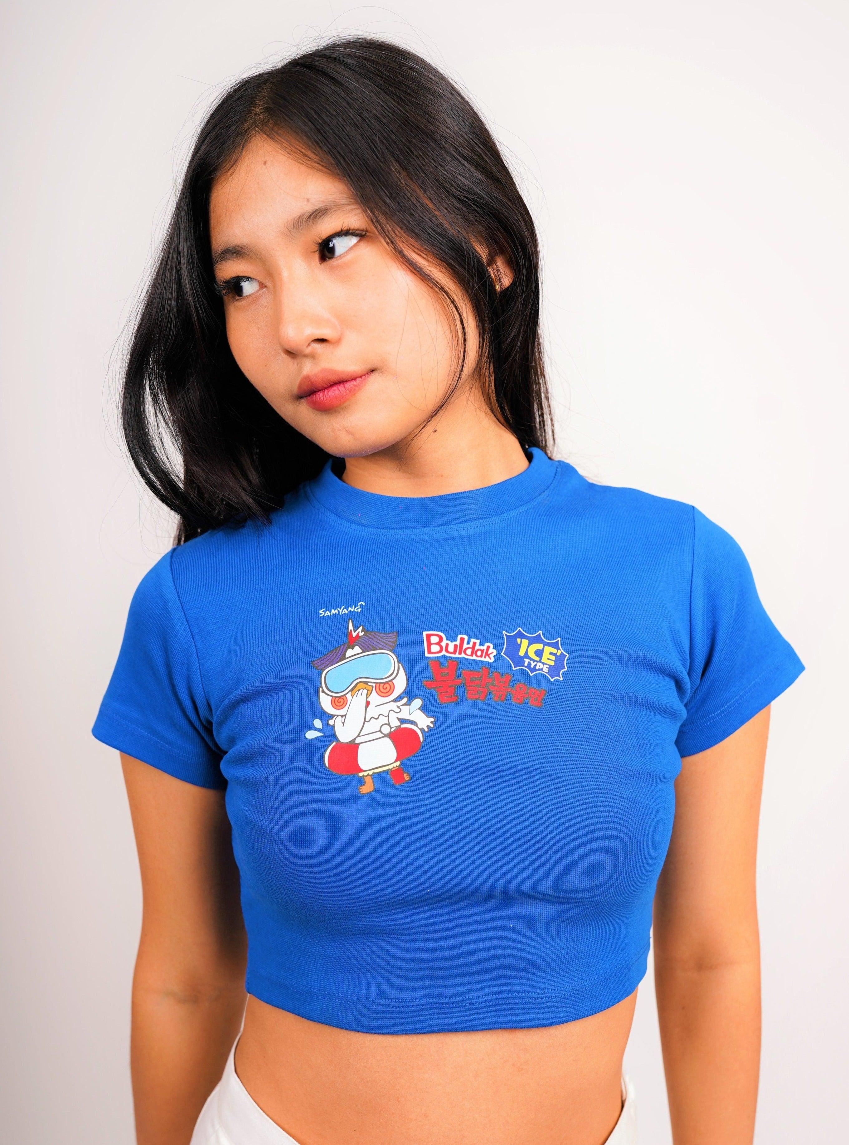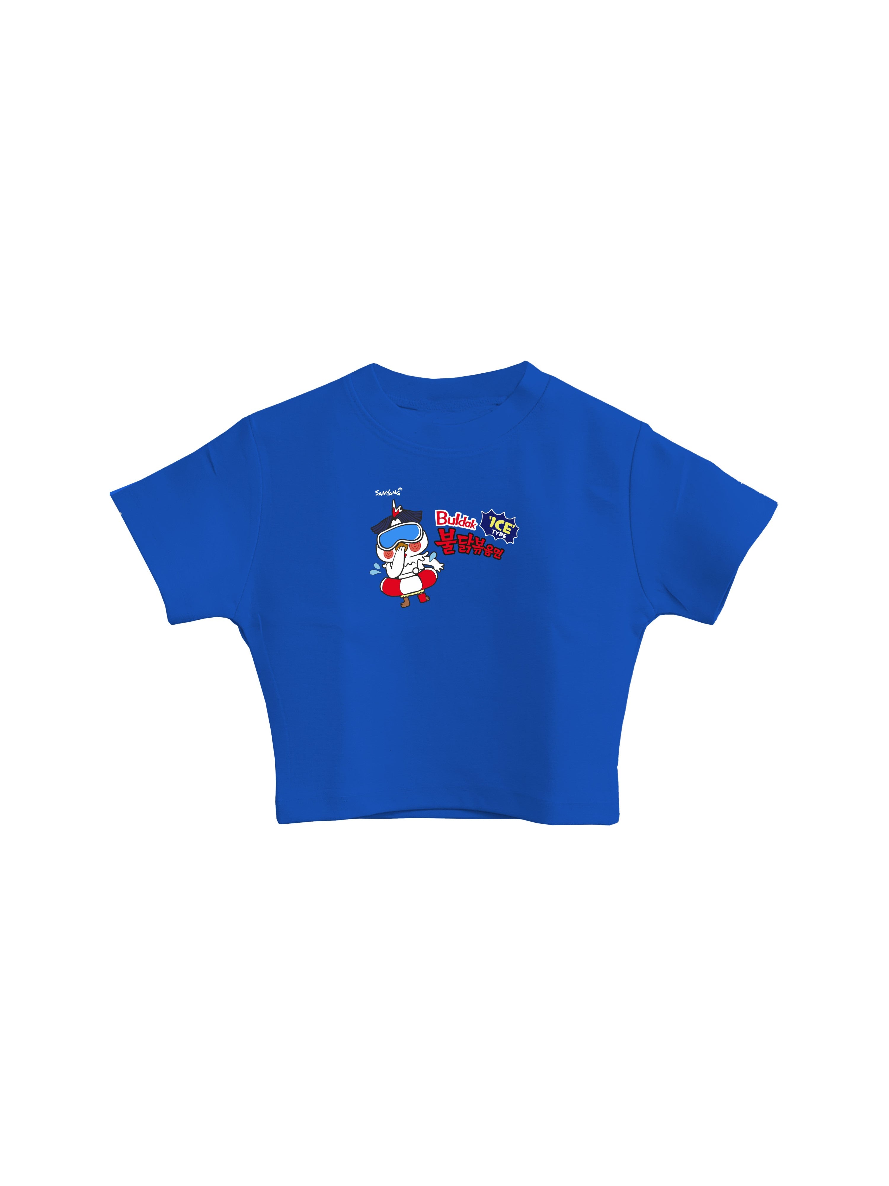 Introducing our Round Neck 'Buldak Remen Ice' Print Crop Tees, where fashion meets the spiciest trend in town!