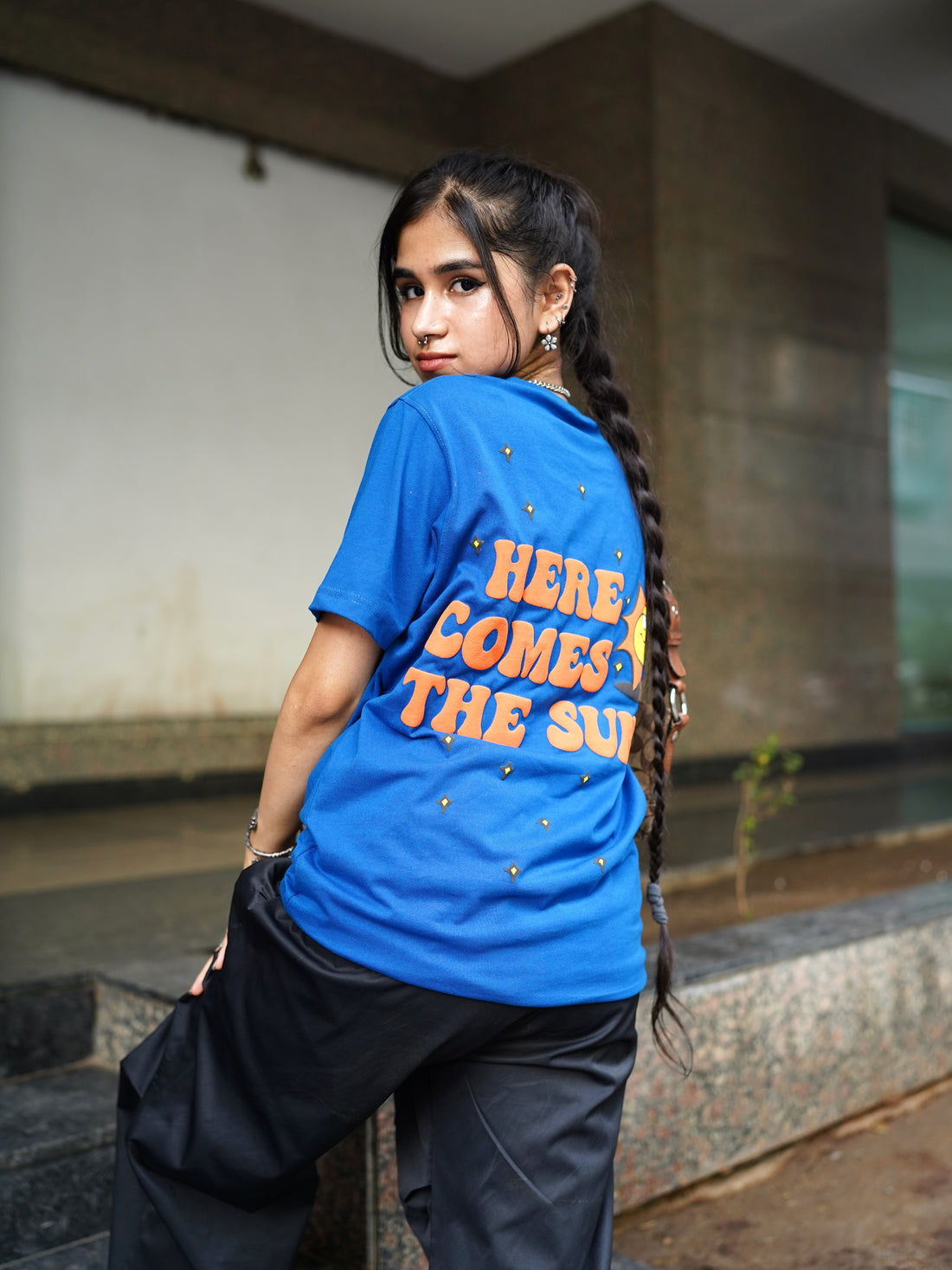 Brighten up your wardrobe with our "Here Comes The Sun" Printed Drop-Sleeved Tee. Embrace the positivity and warmth of this captivating design. Crafted with premium materials, it offers both style and comfort. Let the sun shine on your fashion sense and make a statement with this must-have tee.