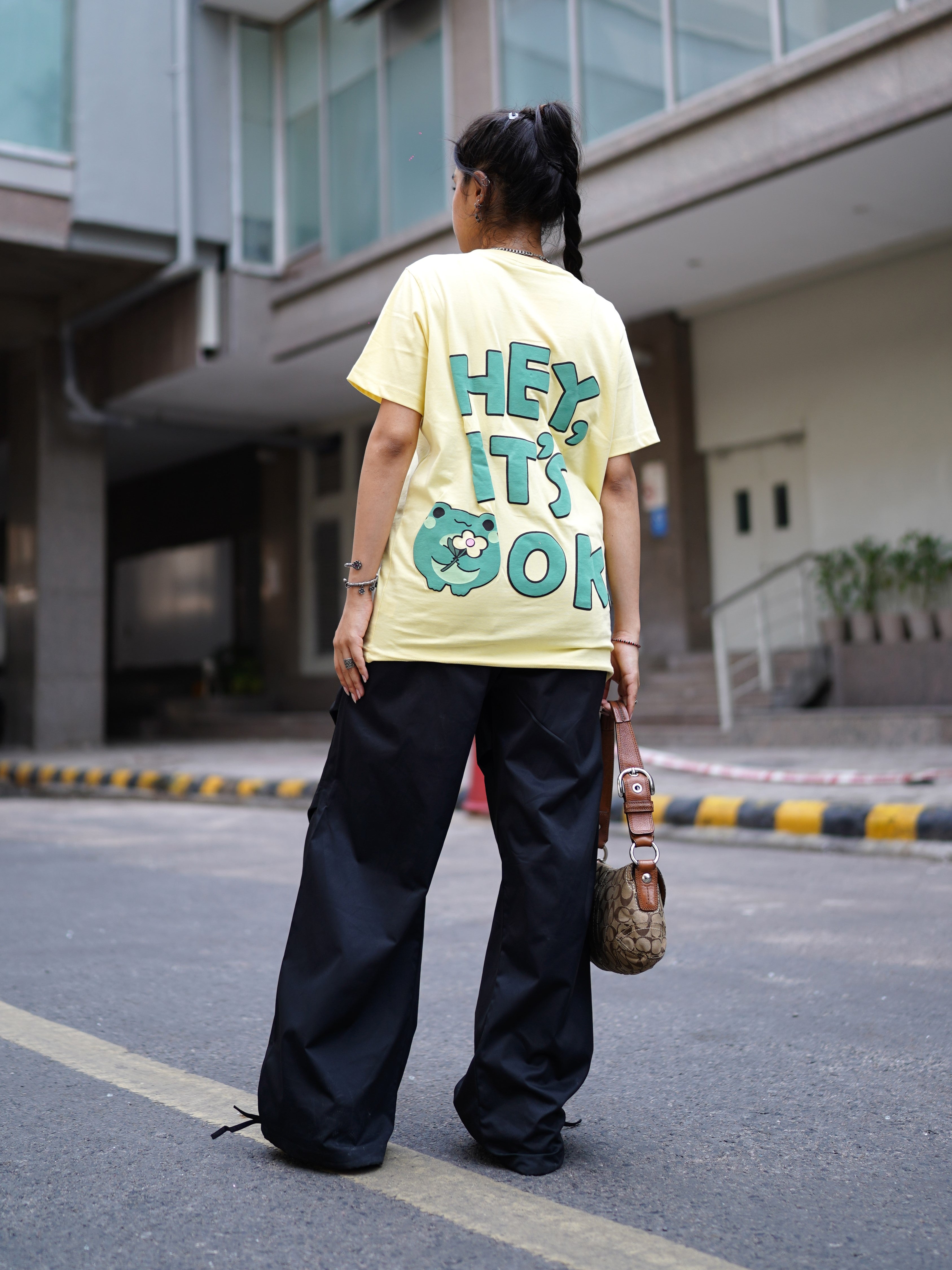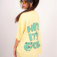 Spread positivity and self-acceptance with our attractive Drop-sleeved Tee. The playful print "Hey, It's Okay" reminds you to embrace imperfections and find peace within. With its stylish design and comfortable fit, this tee radiates a carefree and confident vibe. Let it be a gentle reminder that it's okay to be yourself, just as you are.