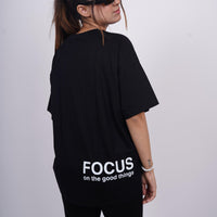 Get ready to slay your goals with our drop-sleeved tee that screams "Focus"! This tee is your stylish companion in conquering the world. Pair it with power pants and killer heels for a fierce, goal-crushing look, or rock it with joggers and sneakers for a "focused but chill" vibe. Stay driven, stay fashionable, and let the world know you mean business.