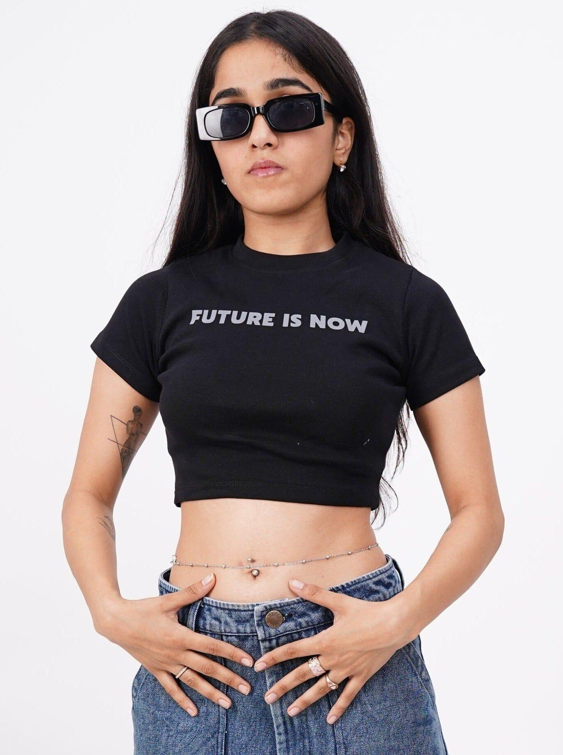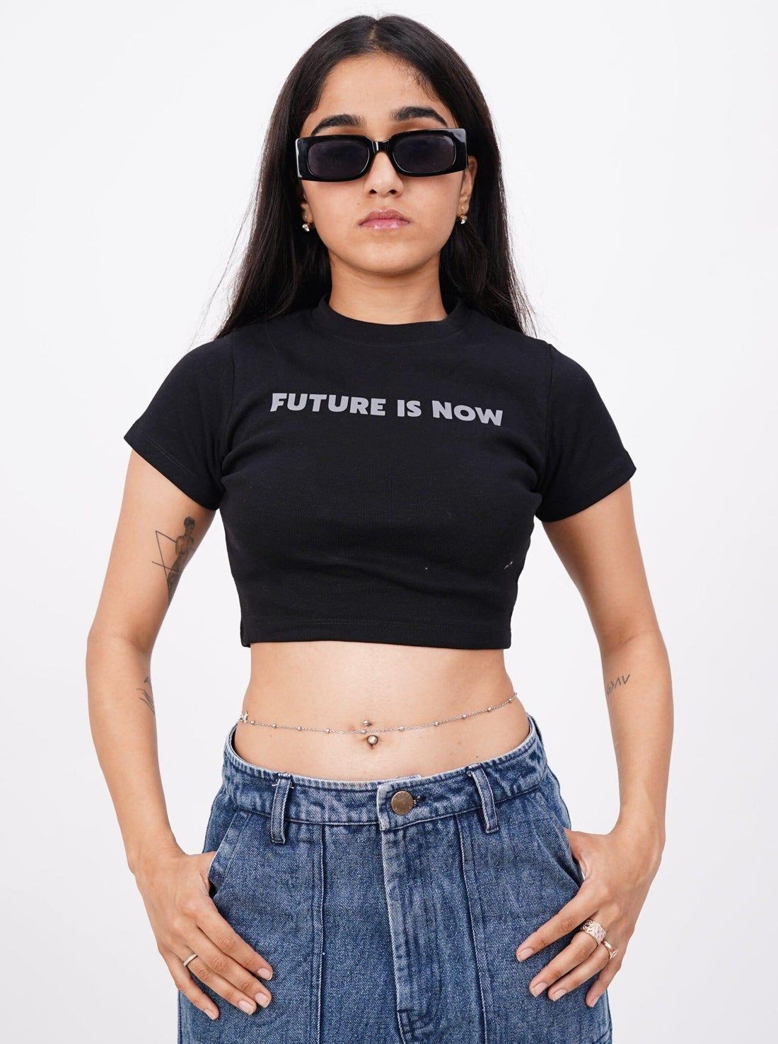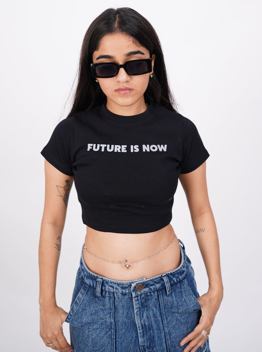 Future Is Now (Reflective) : Burger Bae Round Neck Crop Baby Tee For Women