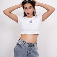 Holly Blue Butterfly : Burger Bae Round Neck Crop Baby Tee For Women