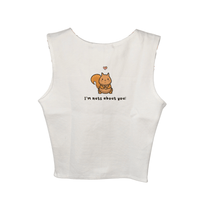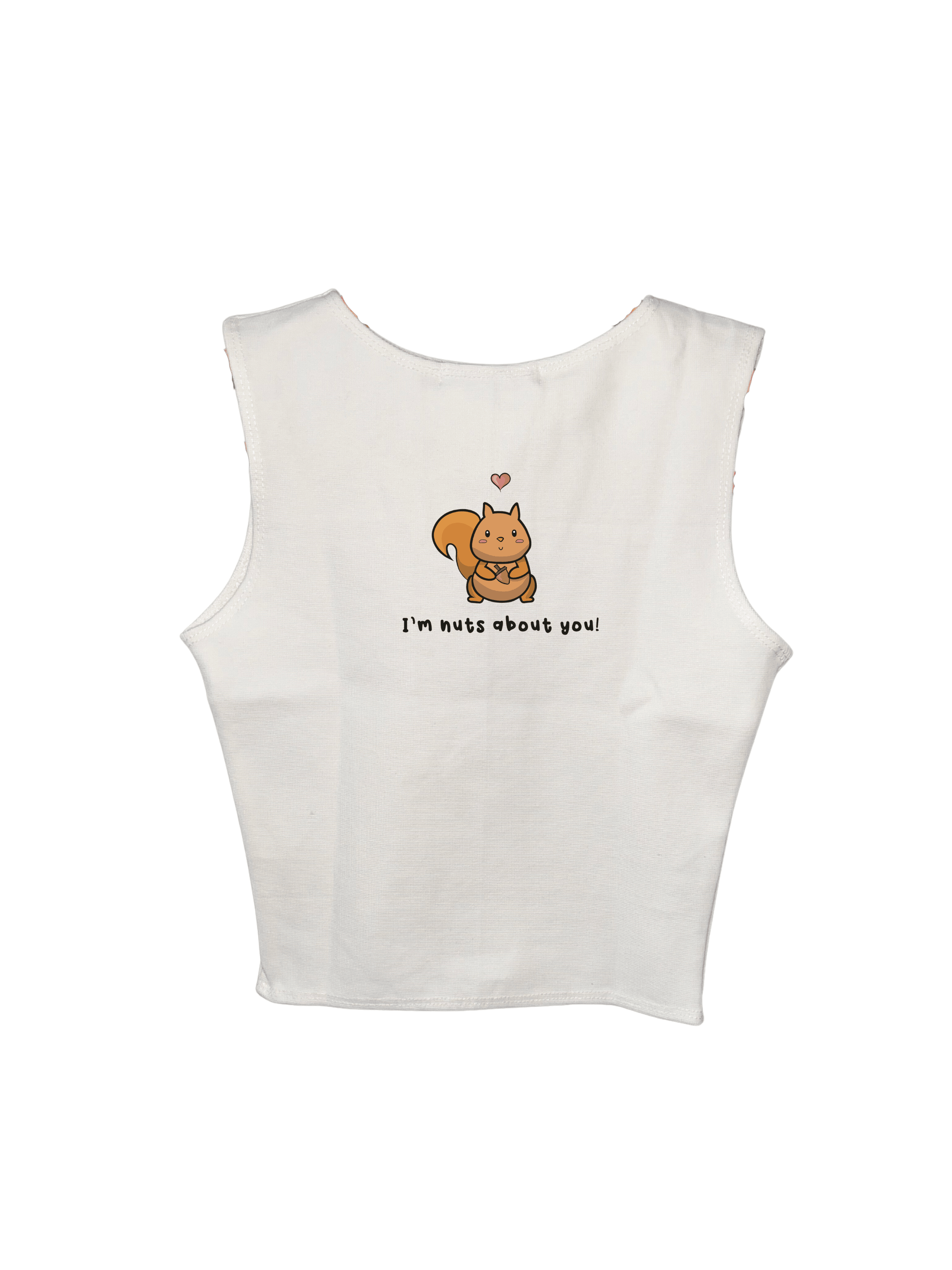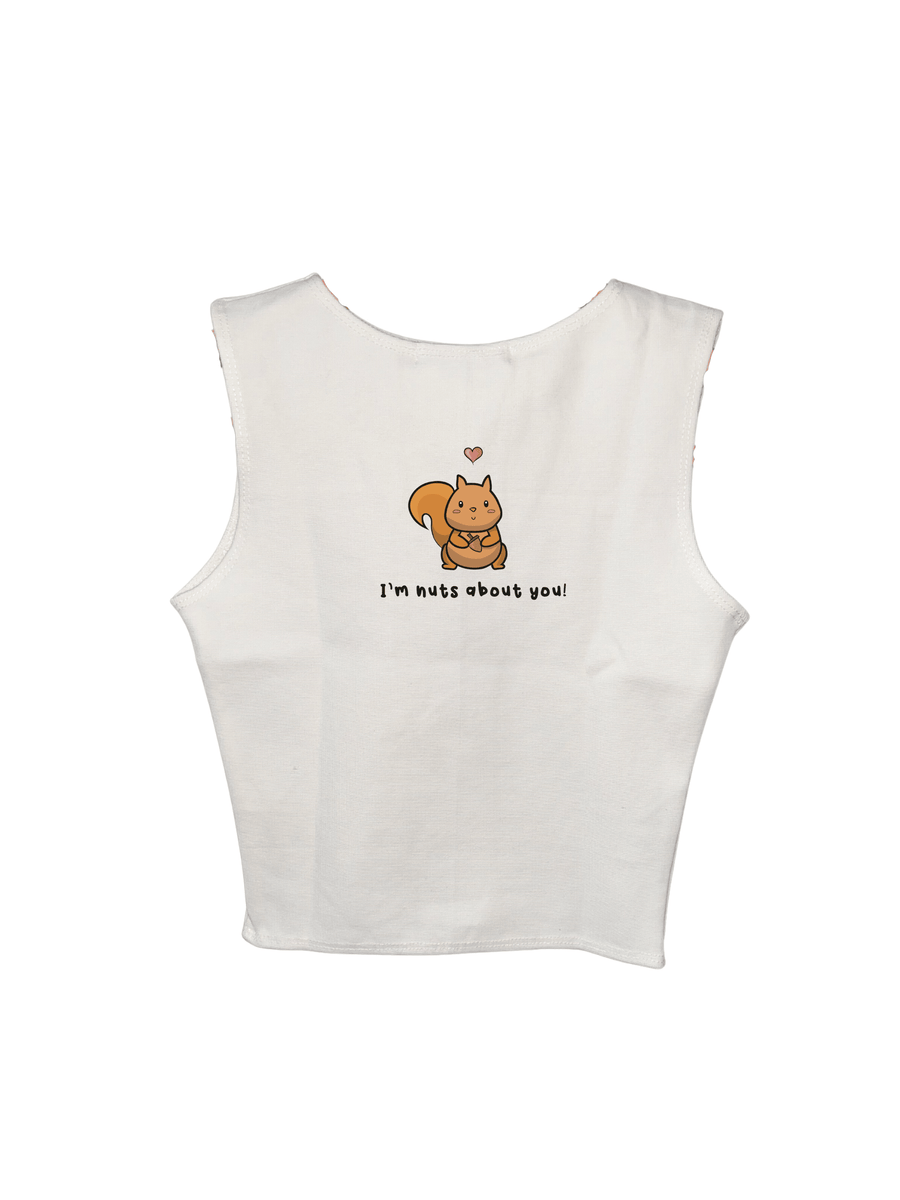 Declare your nutty love with our "I'm Nuts About You" Rachel Tank. This tank is the perfect blend of sweetness and humor, just like your relationship. With a playful squirrel design and a witty message, it's the ultimate way to show your special someone how crazy you are about them. Wear it proudly and let the world know that love can be as nutty as it gets!