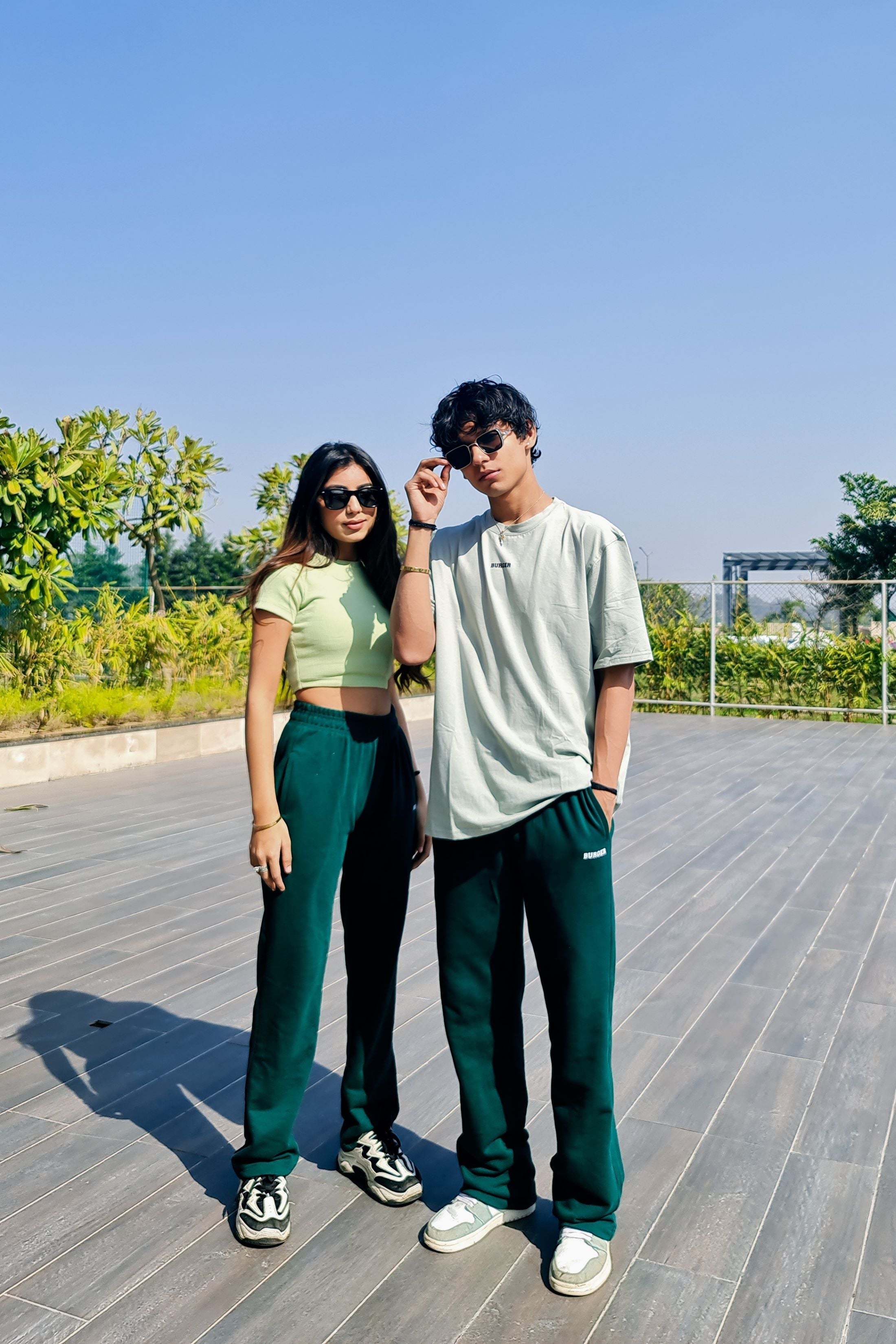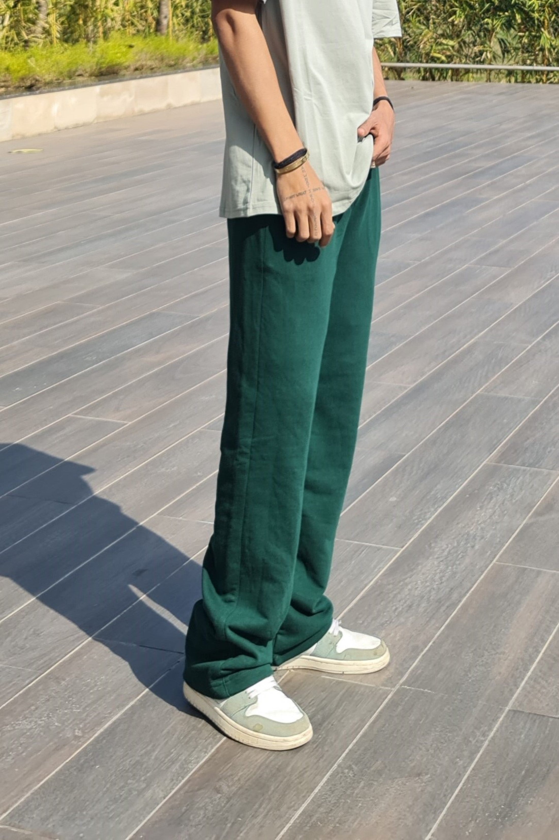 Irish Track Pants Bottle Green (MID RISE BAGGY FIT) For Men And Women
