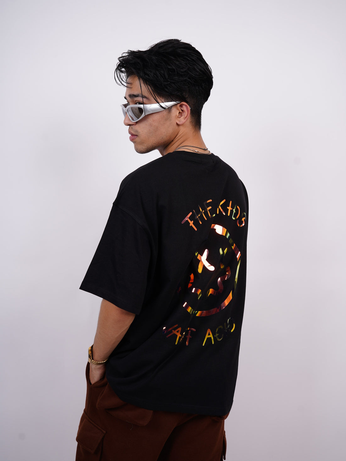 Step into the future with this holographic oversized T-shirt that blends modern aesthetics with effortless streetwear style. Designed with a striking holographic print that shifts colors under different lighting, this tee ensures you stand out wherever you go.