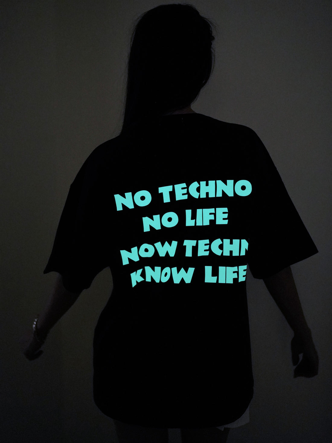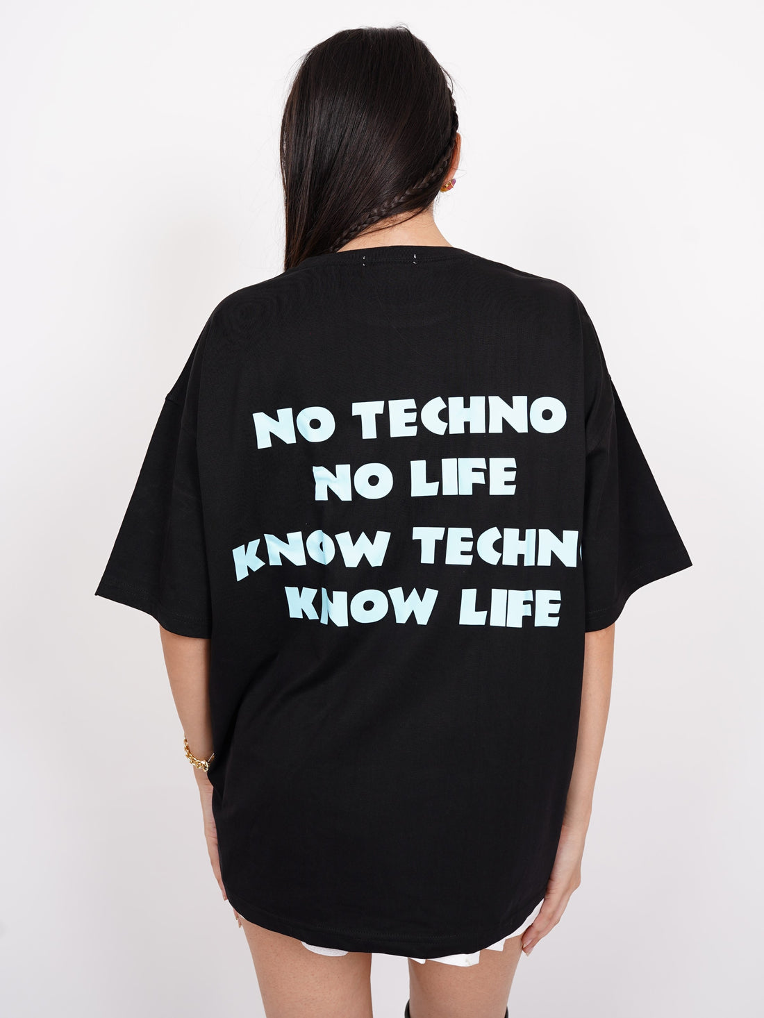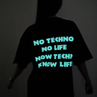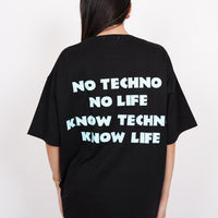 Make a statement with this bold and trendy oversized T-shirt. Designed for both men and women, this tee features a striking back print that reads "No Techno No Life, Know Techno Know Life", making it the perfect pick for electronic music lovers and street wear enthusiasts.