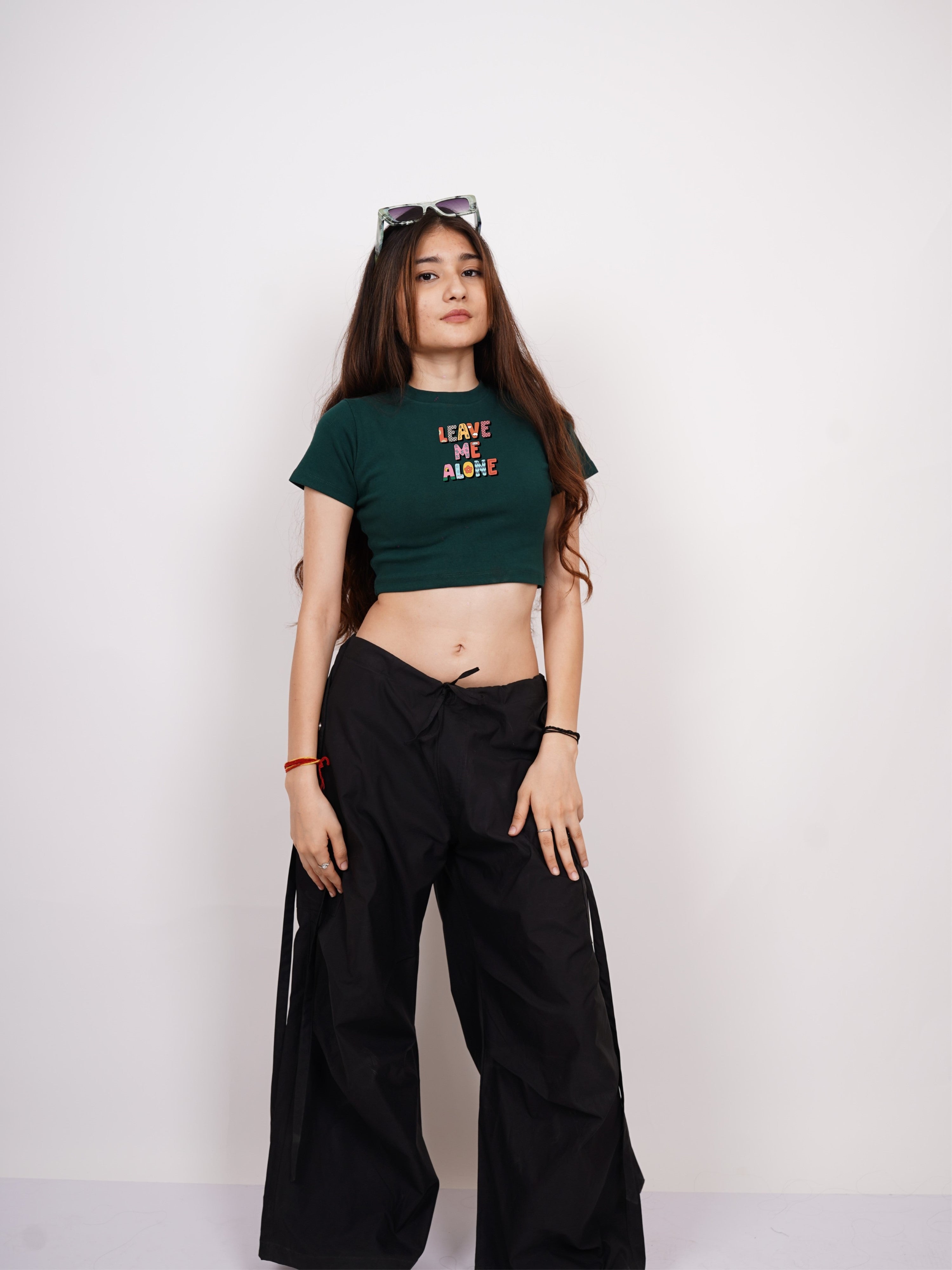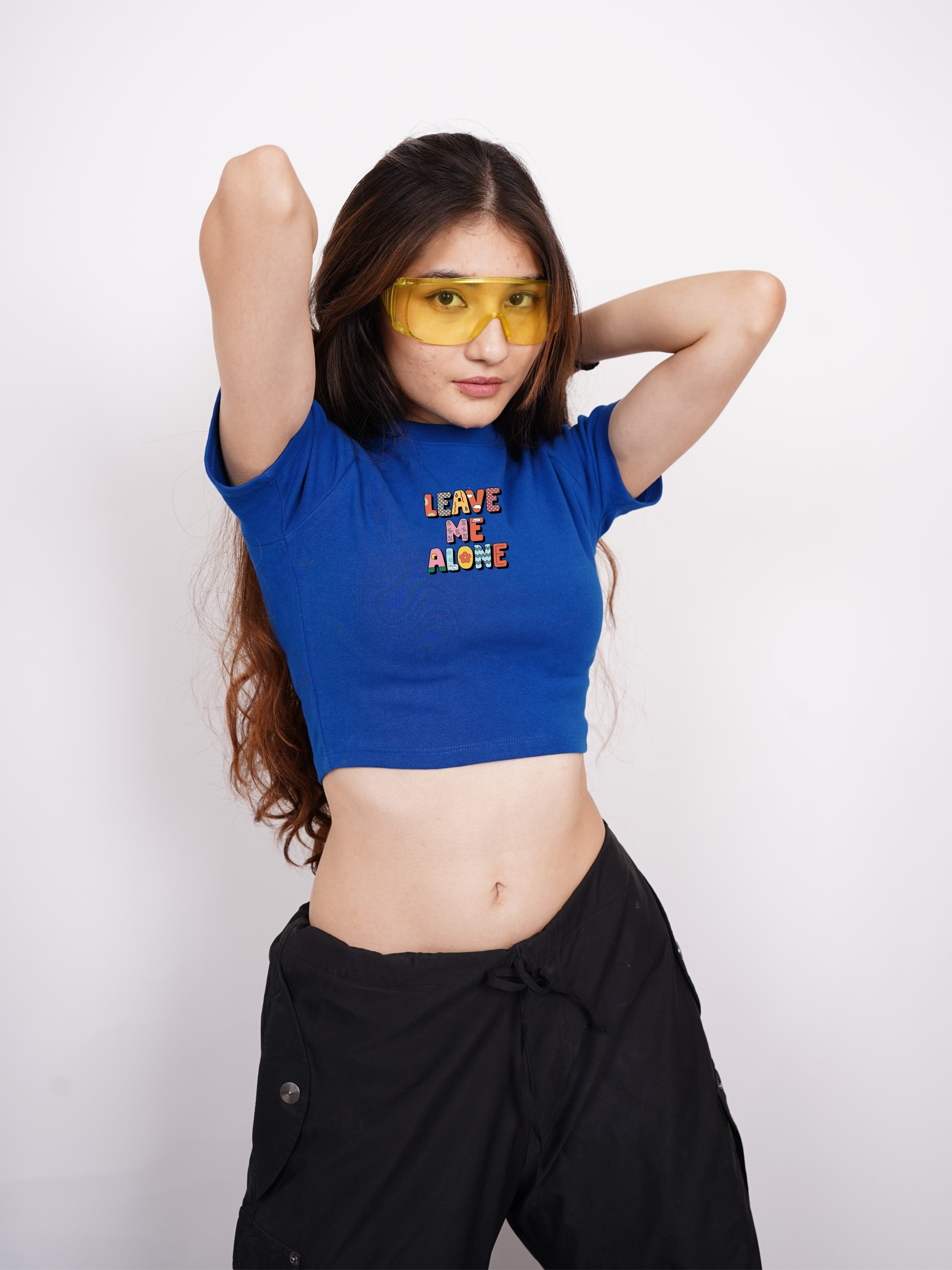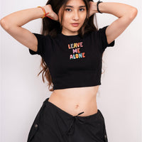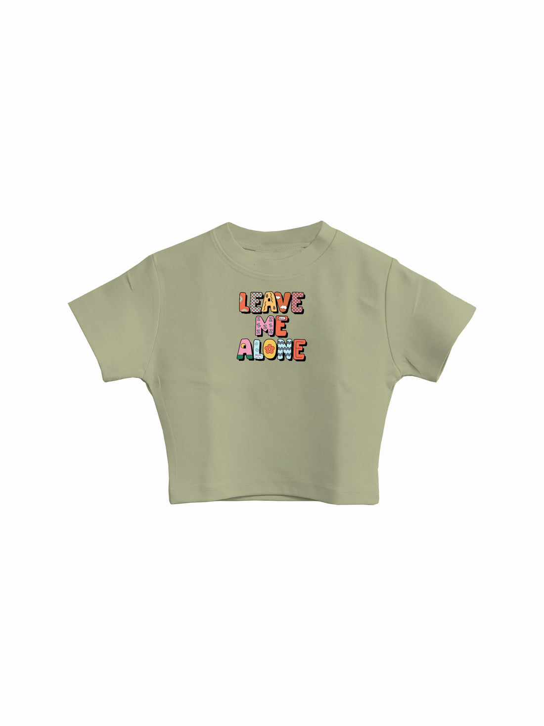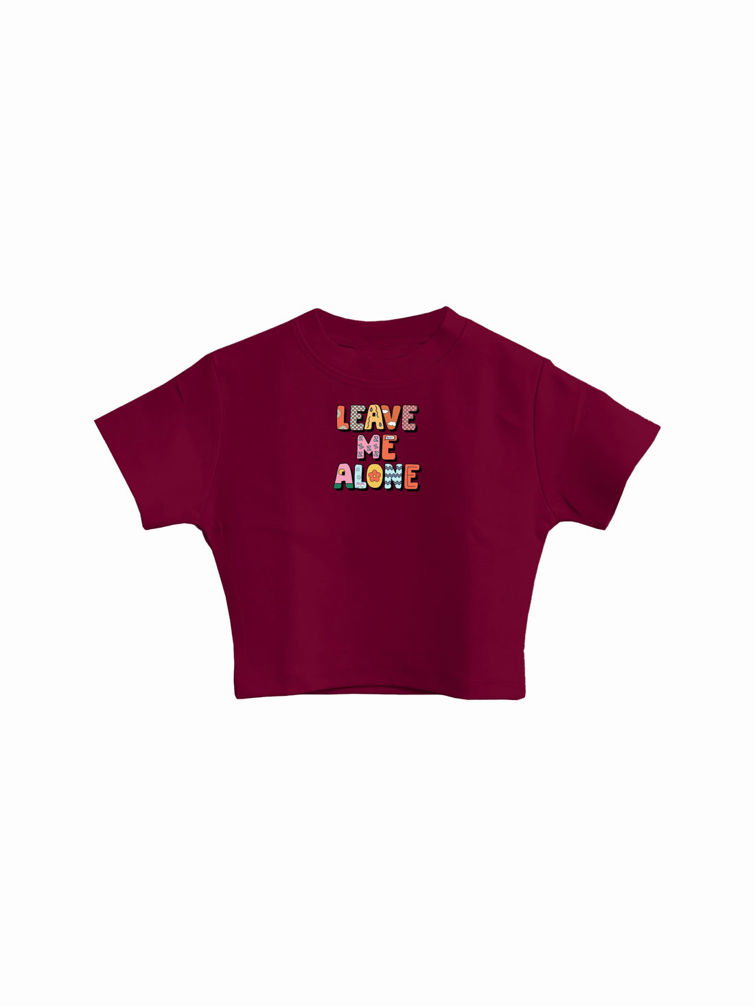 Leave Me Alone : Burger Bae Round Neck Crop Baby Tee For Women