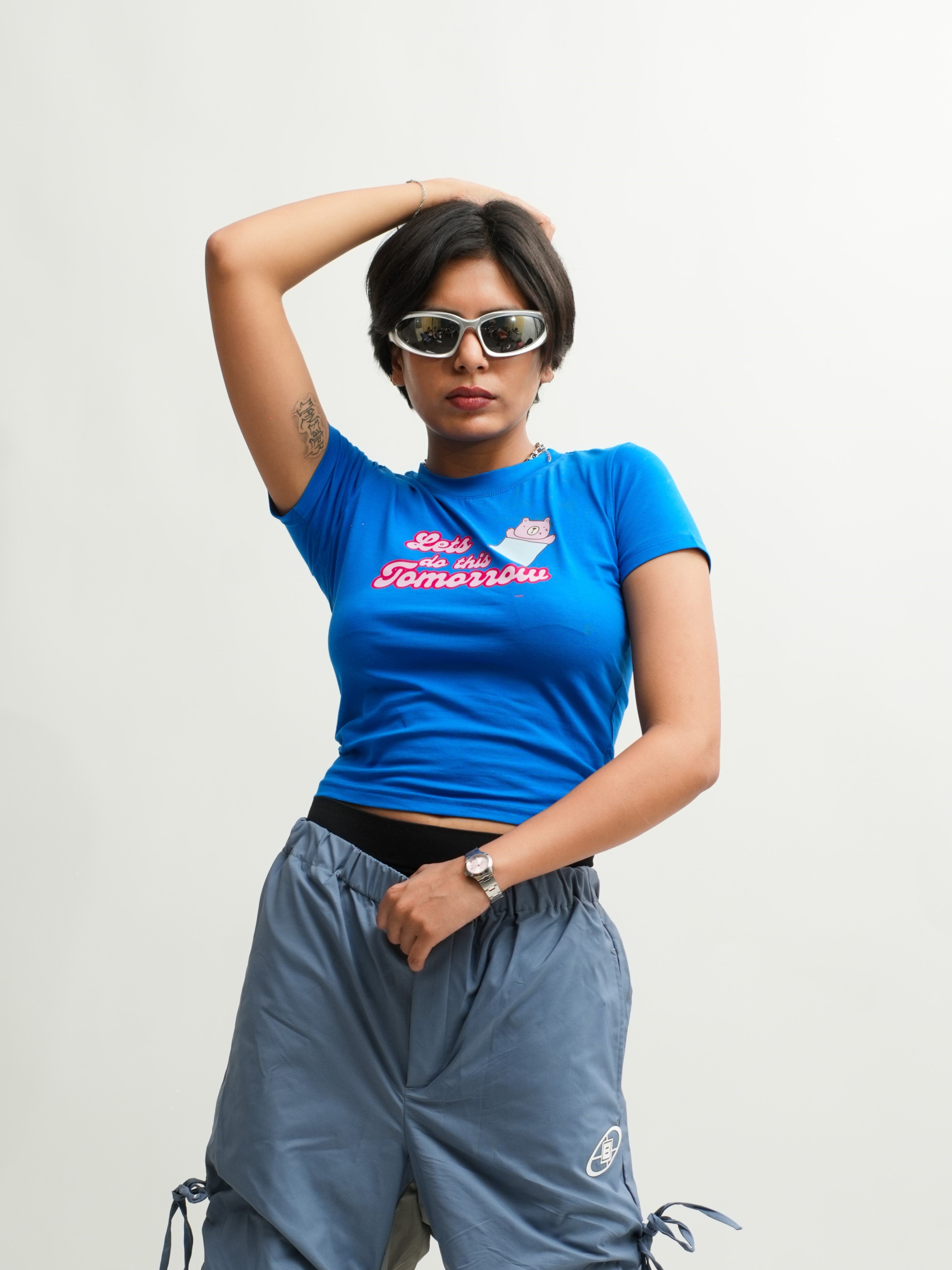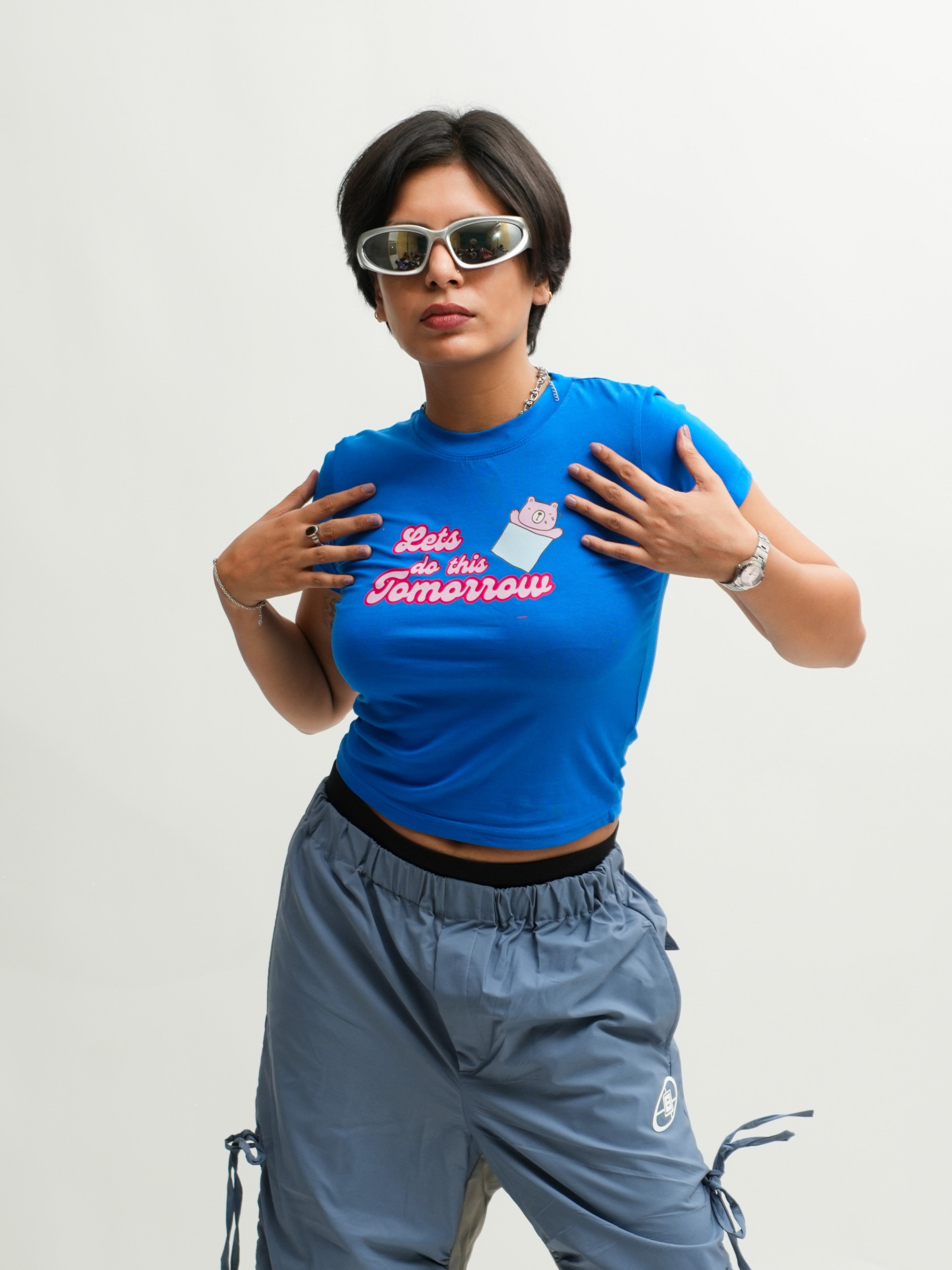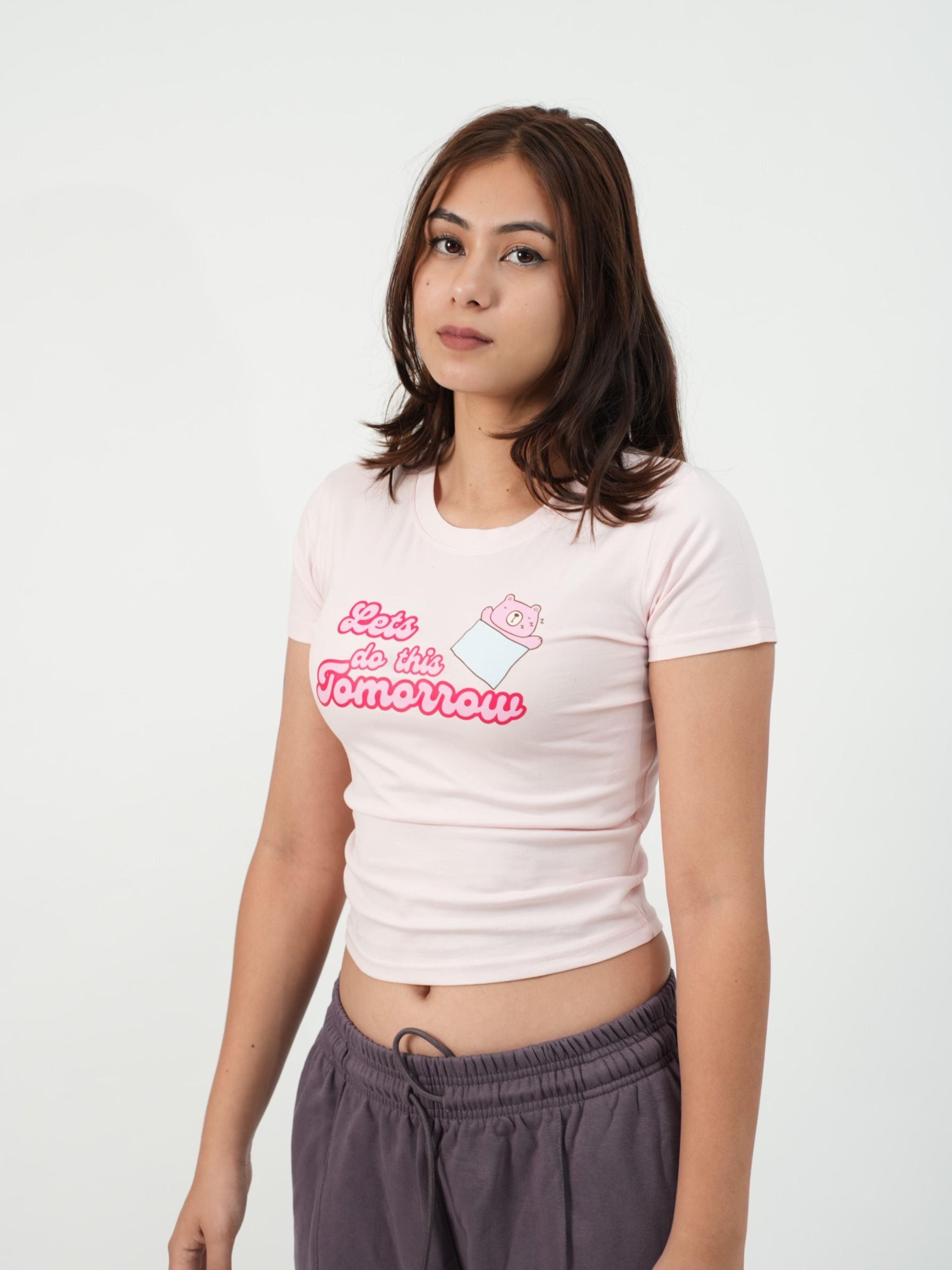 The “Tomorrow” It Girl Baby Tee is the ultimate soft-girl excuse wrapped in pastel perfection. Featuring a sleepy cartoon bear tucked in bed and the cheeky line “Let’s do this tomorrow”, this fitted baby tee speaks for every girl who's choosing peace (and naps) over pressure.