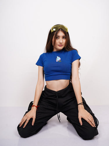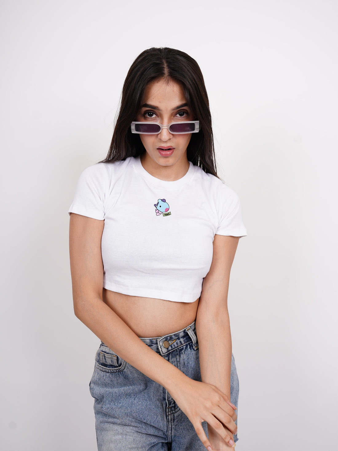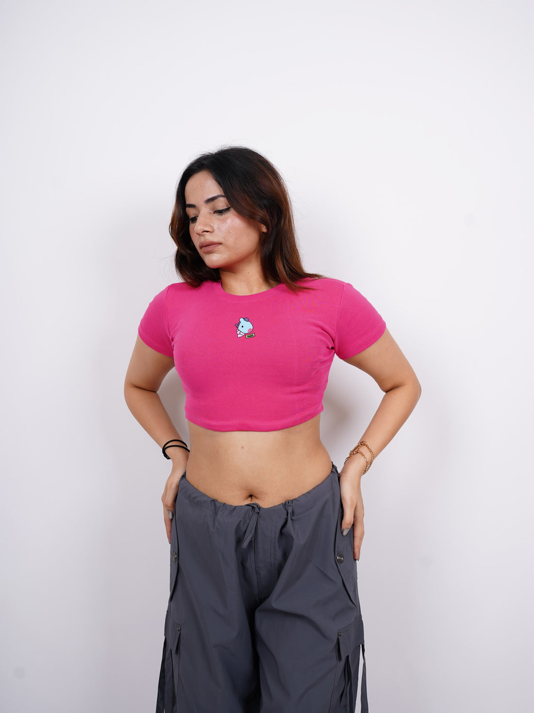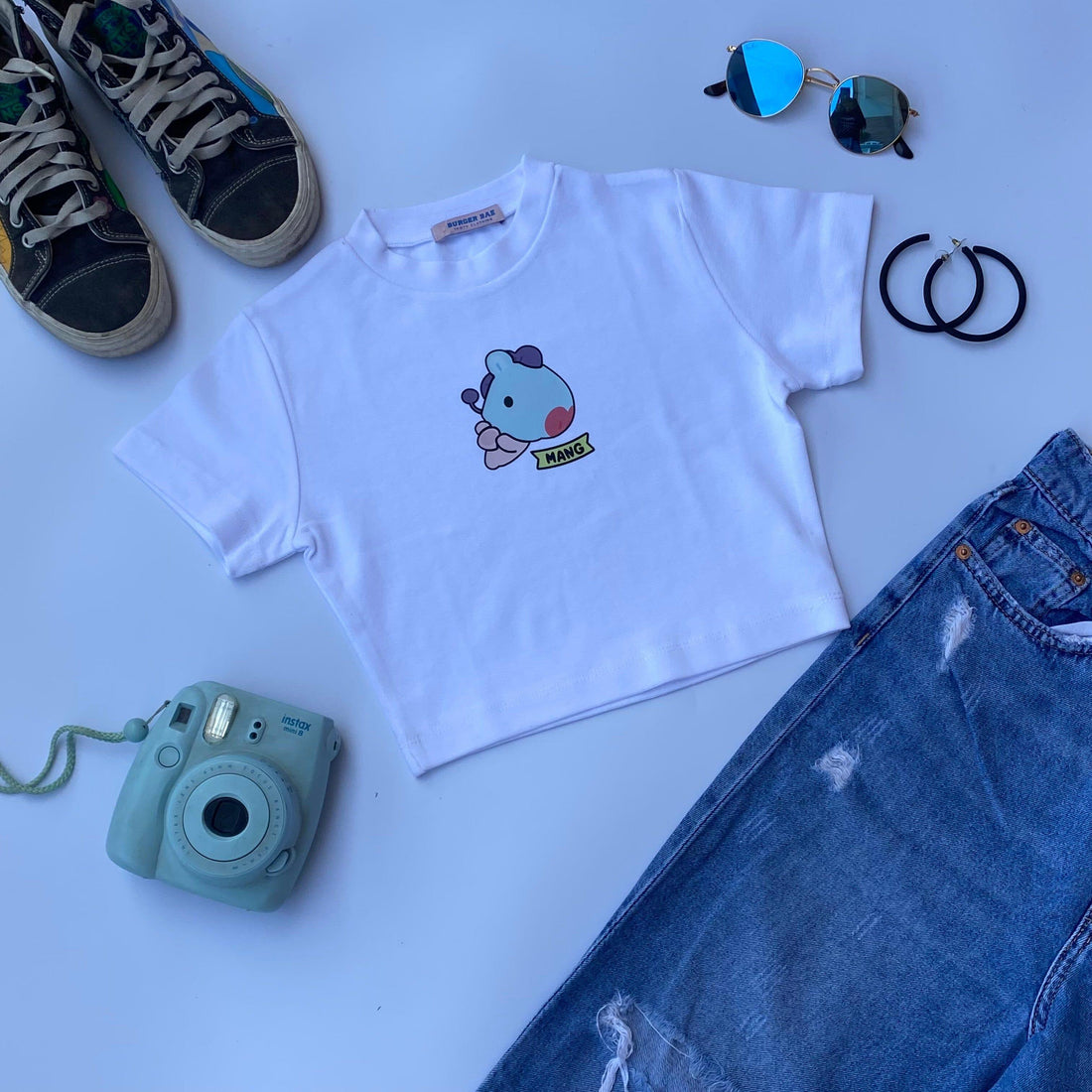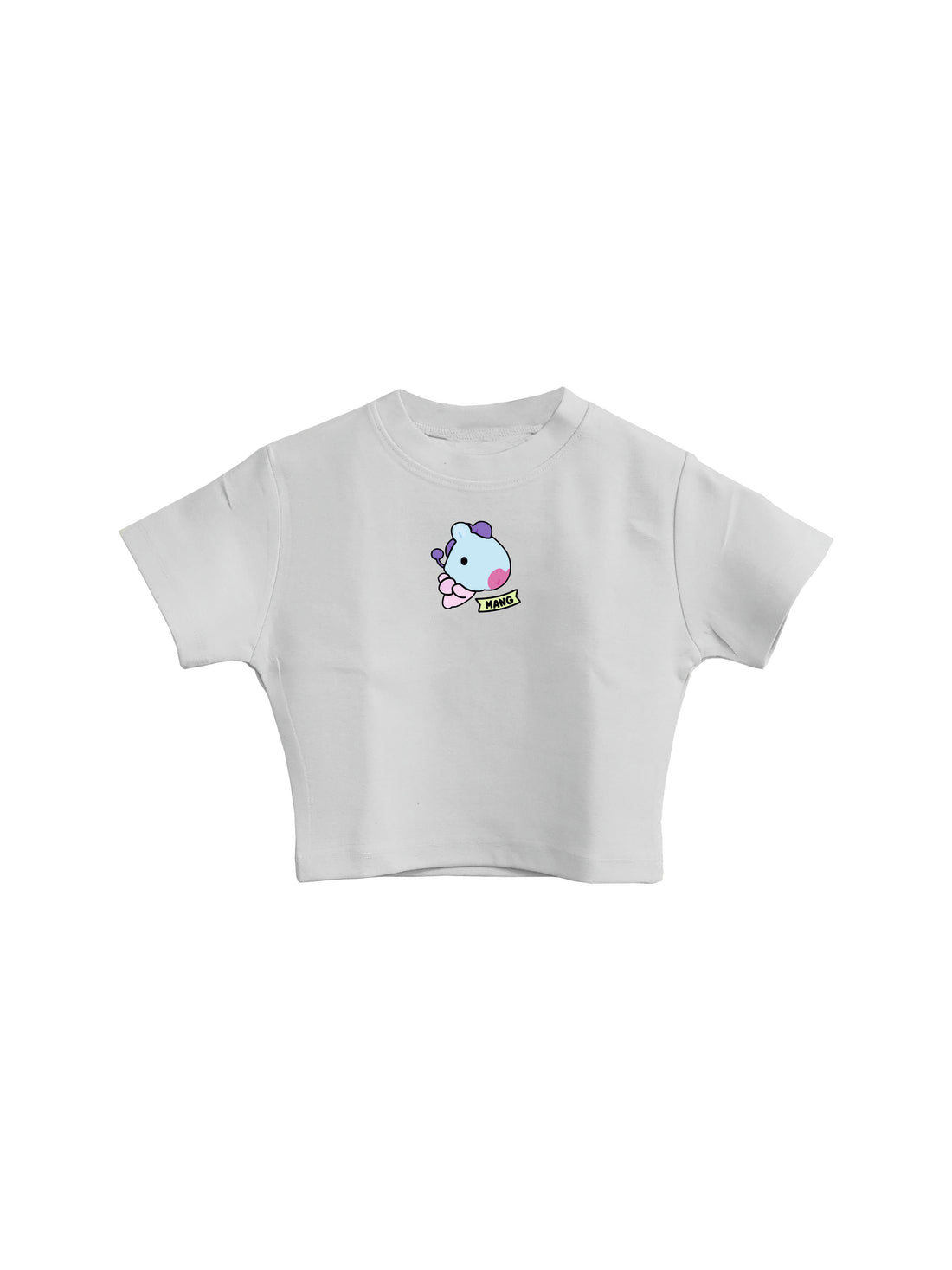 Mang BT21 : Burger Bae Round Neck Crop Baby Tee For Women