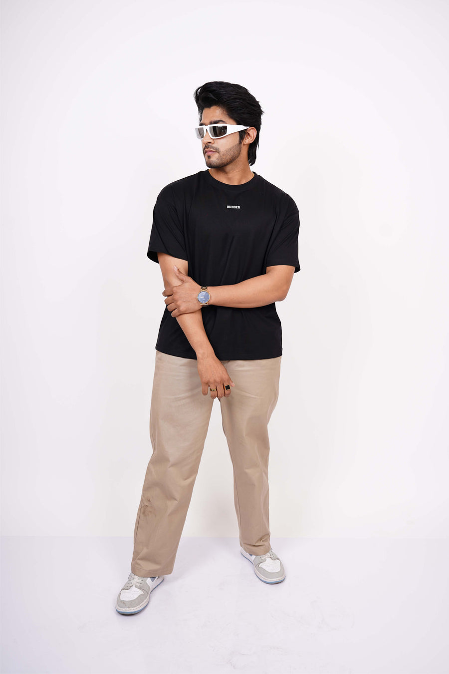 Elevate your everyday style with the Minimal Burger Logo Round Neck Drop-Sleeved Tee, designed for both men and women. Crafted from high-quality fabric, this oversized tee offers a relaxed and comfortable fit, making it perfect for effortless street wear styling.