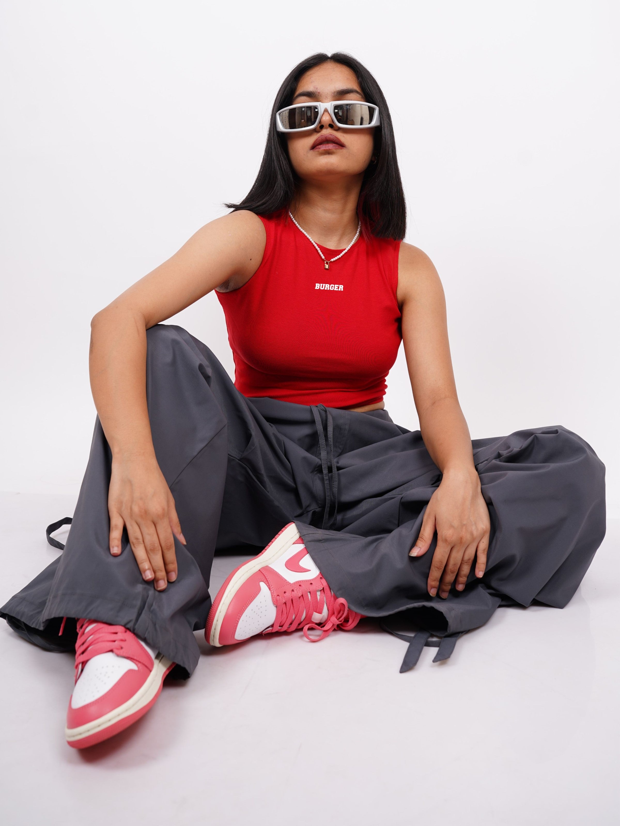 The Minimal Burger Logo Rachel Tank (Red) for Women is a bold yet effortless essential for your wardrobe. Designed in a vibrant red hue, this fitted tank features a sleek sleeveless cut and a high neckline for a flattering silhouette. Made from soft, stretchy fabric, it offers both comfort and style, perfect for all-day wear. The minimal BURGER logo adds a subtle yet trendy touch, making it easy to pair with cargo pants, joggers, or denim for a street-style-inspired look.