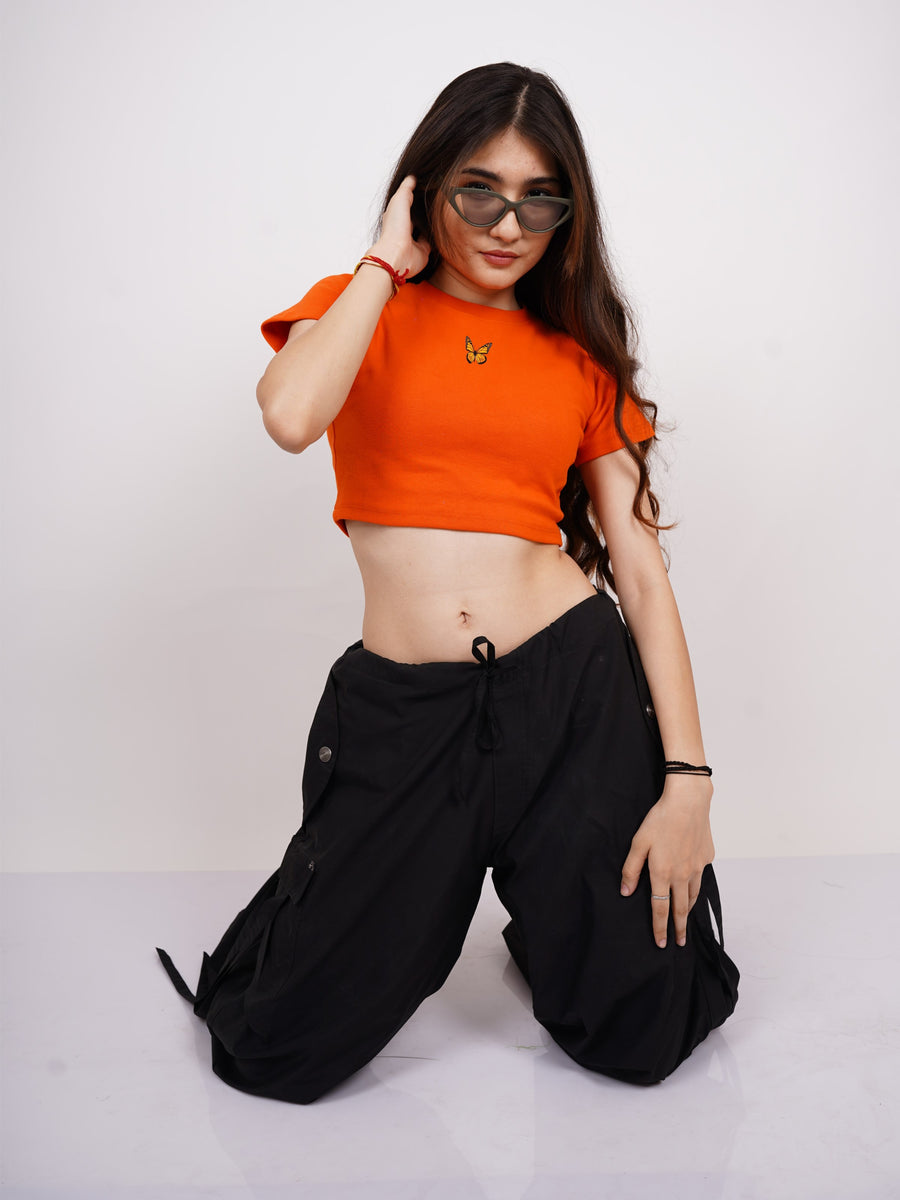 Monarch : Burger Bae Round Neck Crop Baby Tee For Women